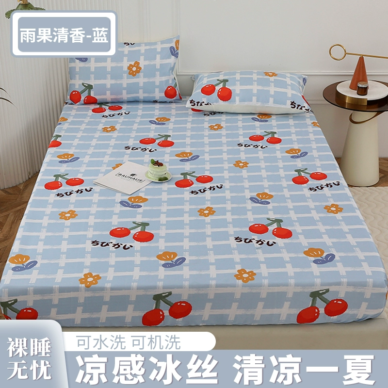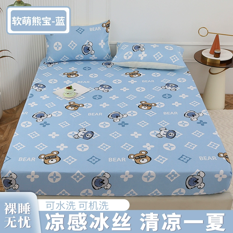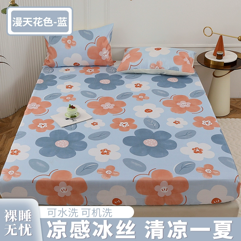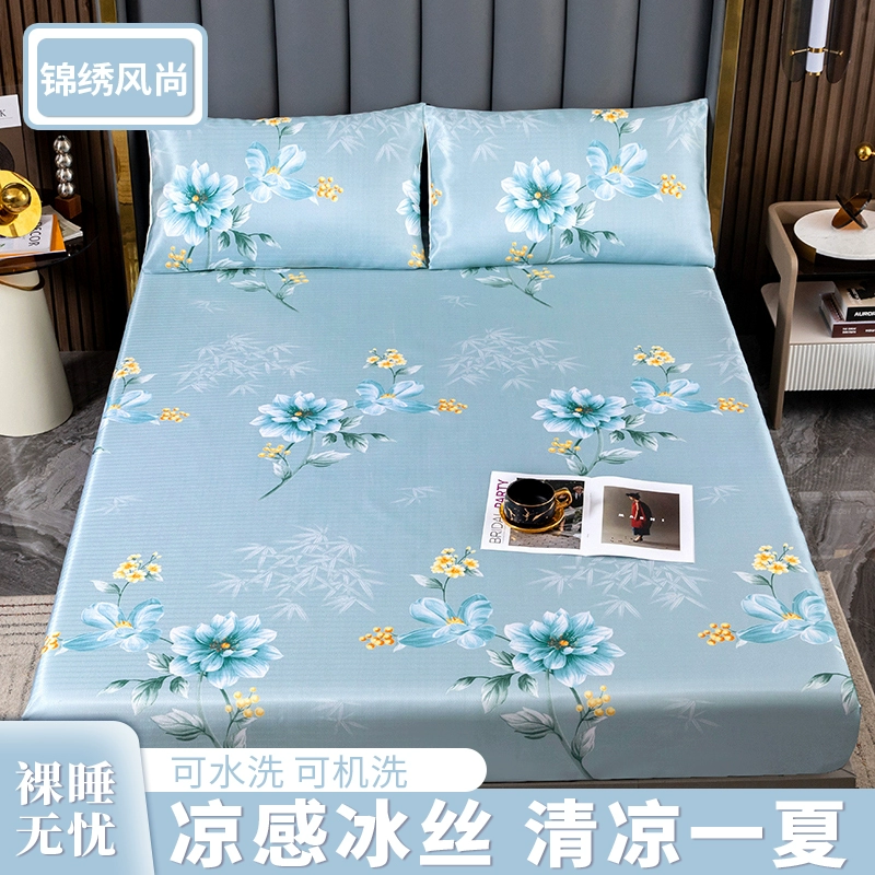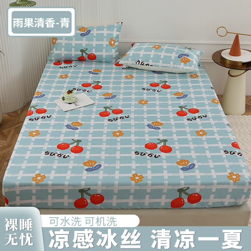 | nameOriginal | Fitted sheet single piece summer ice silk mat bed cover mattress protector summer anti-slip bed sheet single bed set three-piece set |