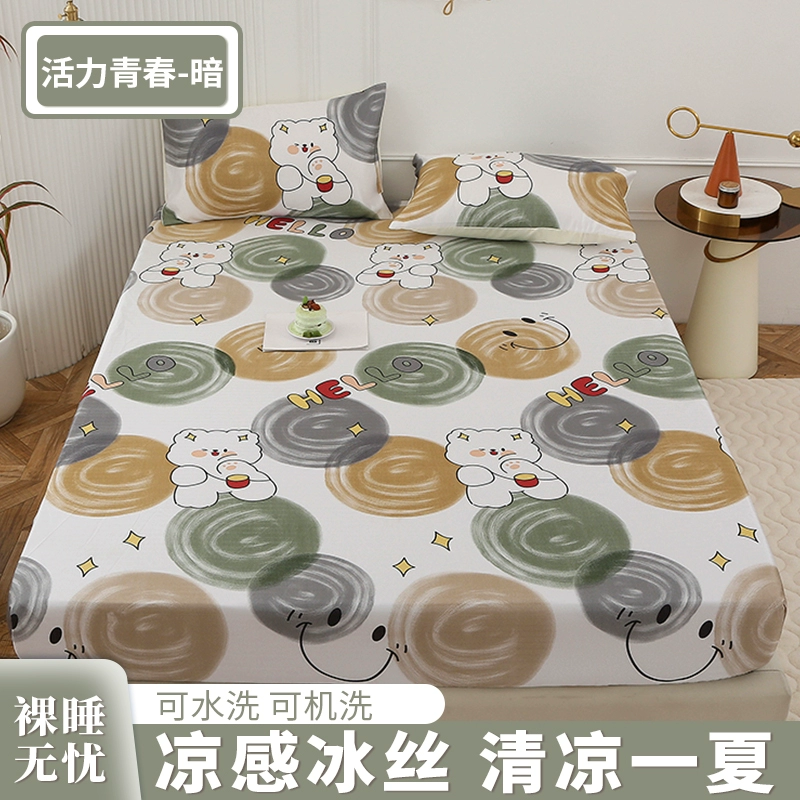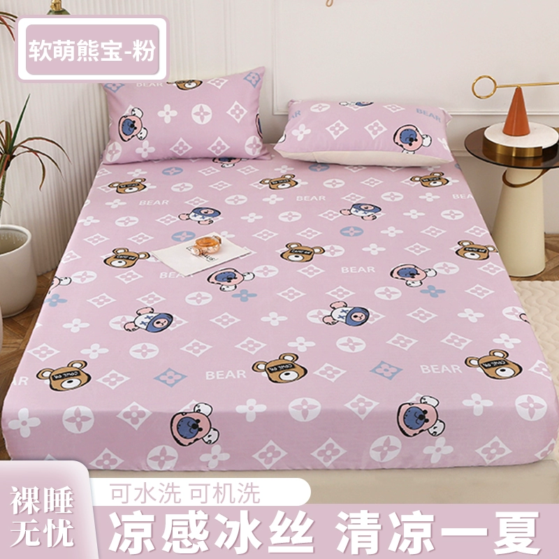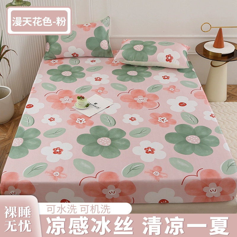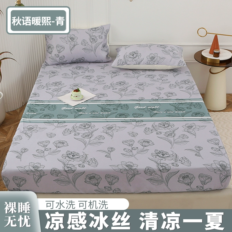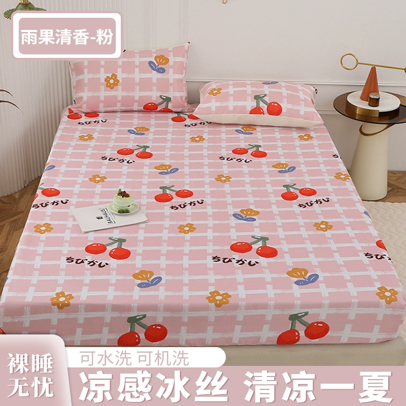 | nameOriginal | Fitted sheet single piece summer ice silk mat bed cover mattress protector summer anti-slip bed sheet single bed set three-piece set |