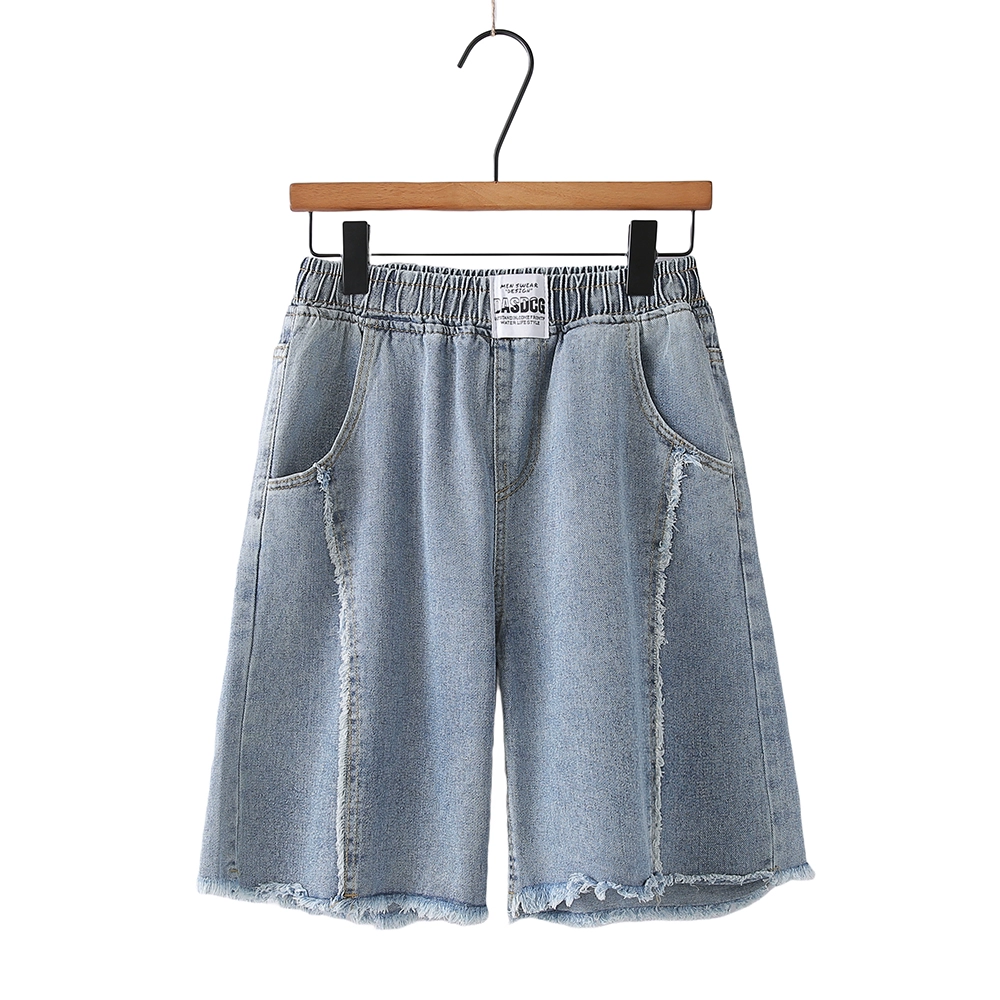 Five-cent fat mm label elastic waist wide leg raw edge shorts
