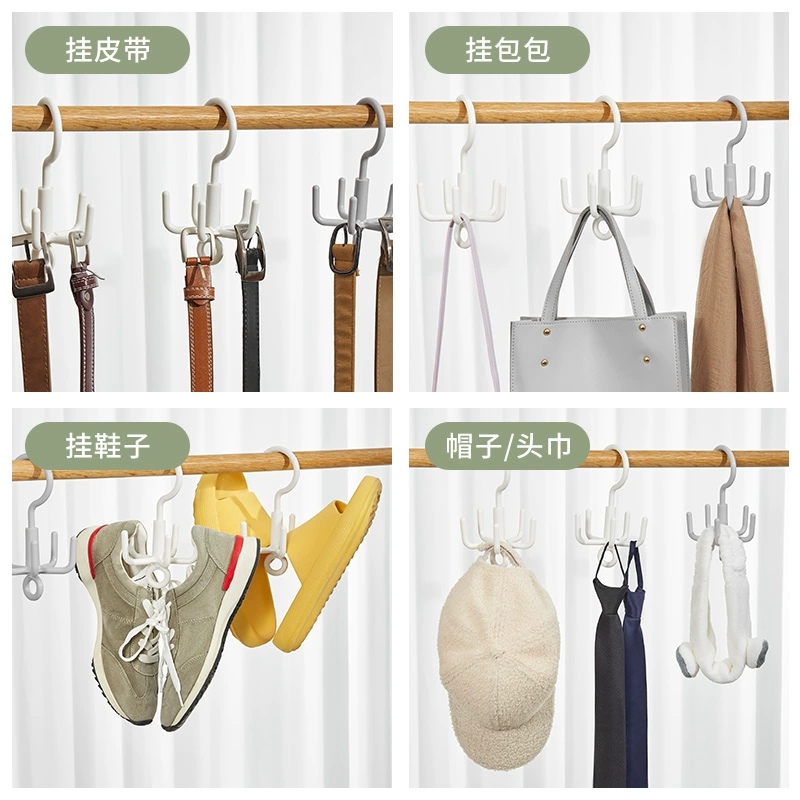 Five-claw rotating hook household multi-functional wardrobe clothes hat belt hanging bag bag storage plastic multi-hook hanger