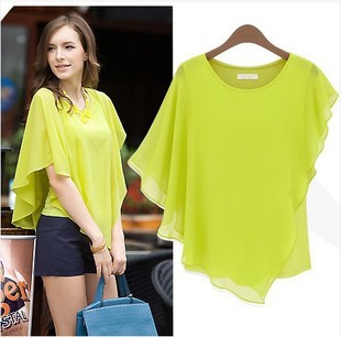 | nameOriginal | Five-color Five-size European and American Commuter T-shirt Ruffled Short-sleeved Chiffon Top Women's Bat Top |