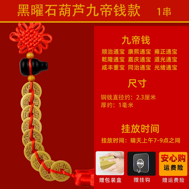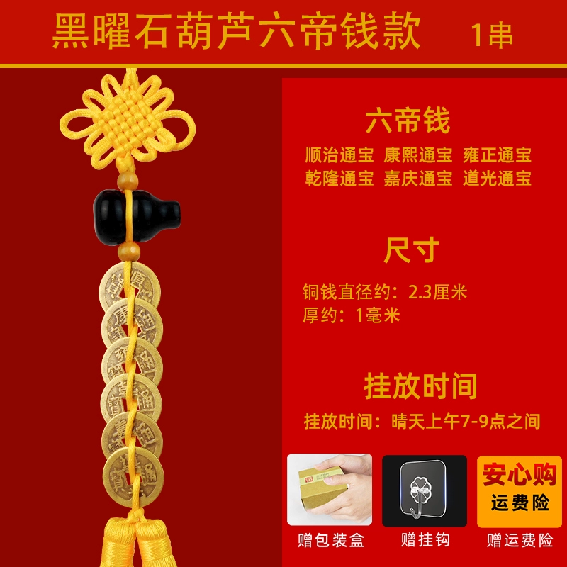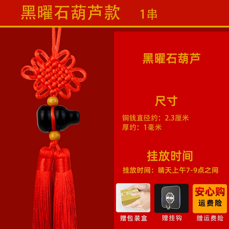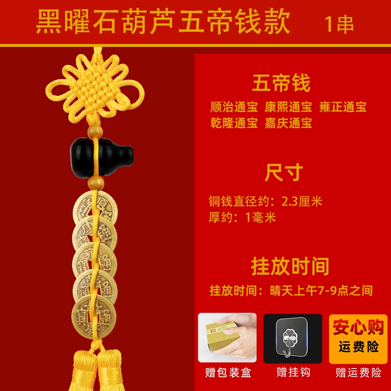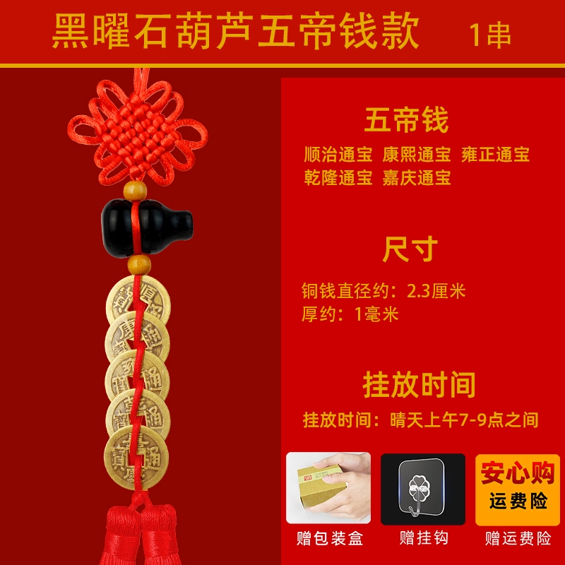 Five Emperors Money Crystal Chinese Knot Ornament Obsidian Gourd