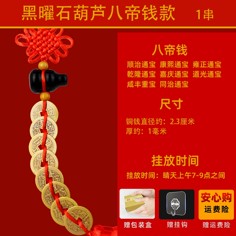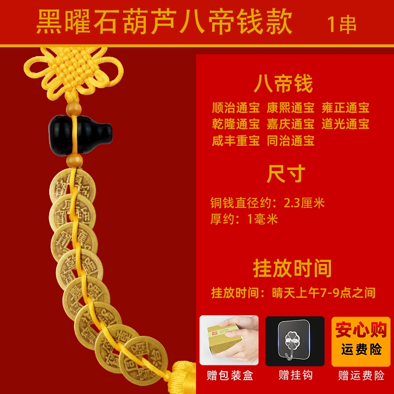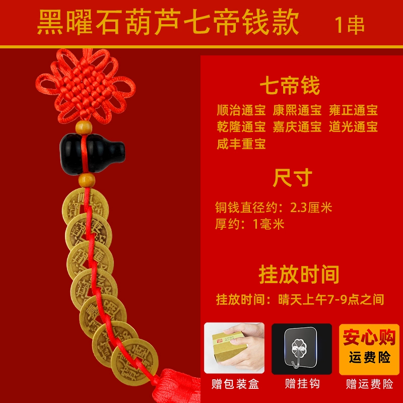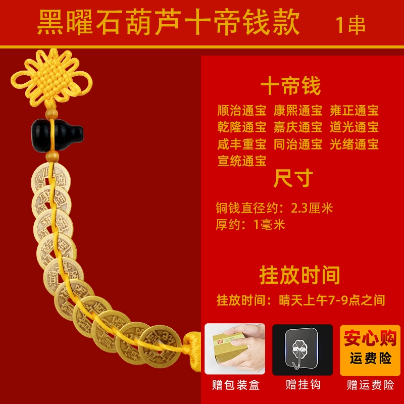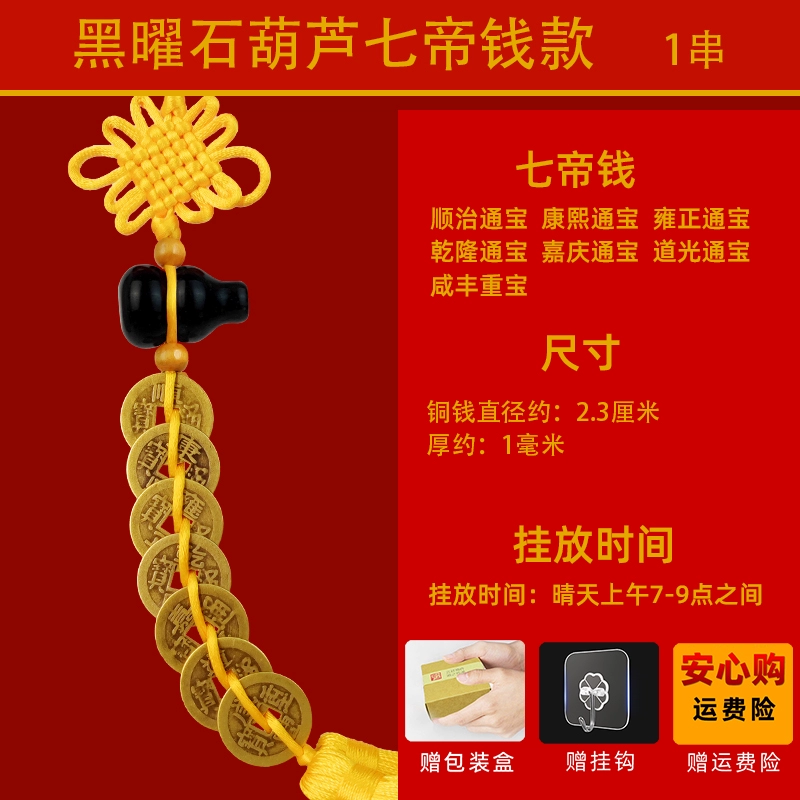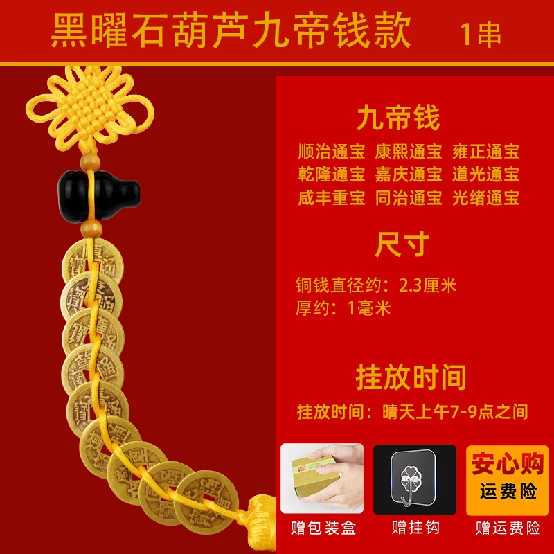 Five Emperors Money Crystal Chinese Knot Ornament Obsidian Gourd