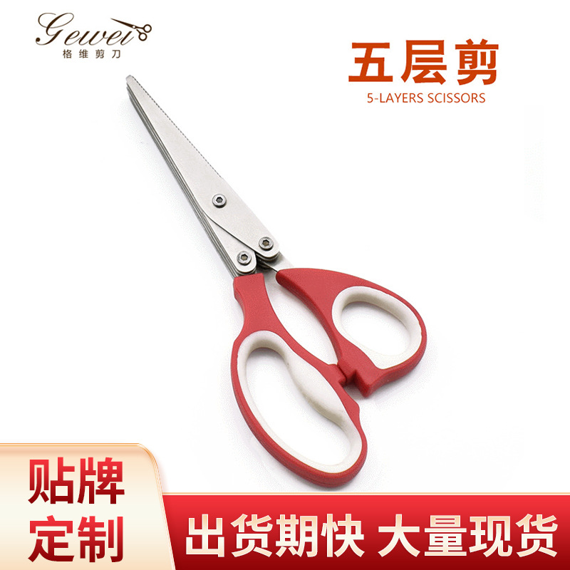 Five-layer scallion shears vegetable stainless steel strong shredded paper shears chili seaweed complementary food shears