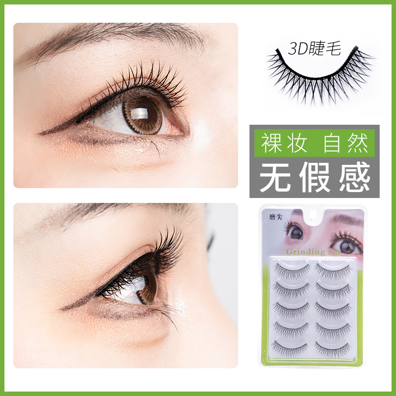 Five pairs of sharpened false eyelashes, 263 natural nude, short in front, long in back, thick and curled, 3D eyelash stickers, false eyelashes