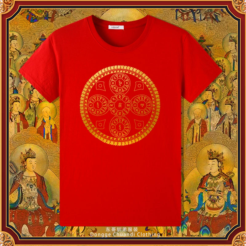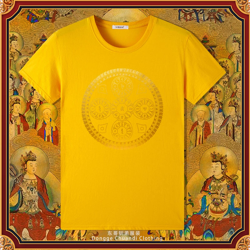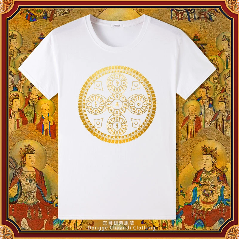 | nameOriginal | Five-party Buddha mantra printed short-sleeved Buddhist culture high-end summer new men's and women's same style pure cotton top T-shirt trendy |