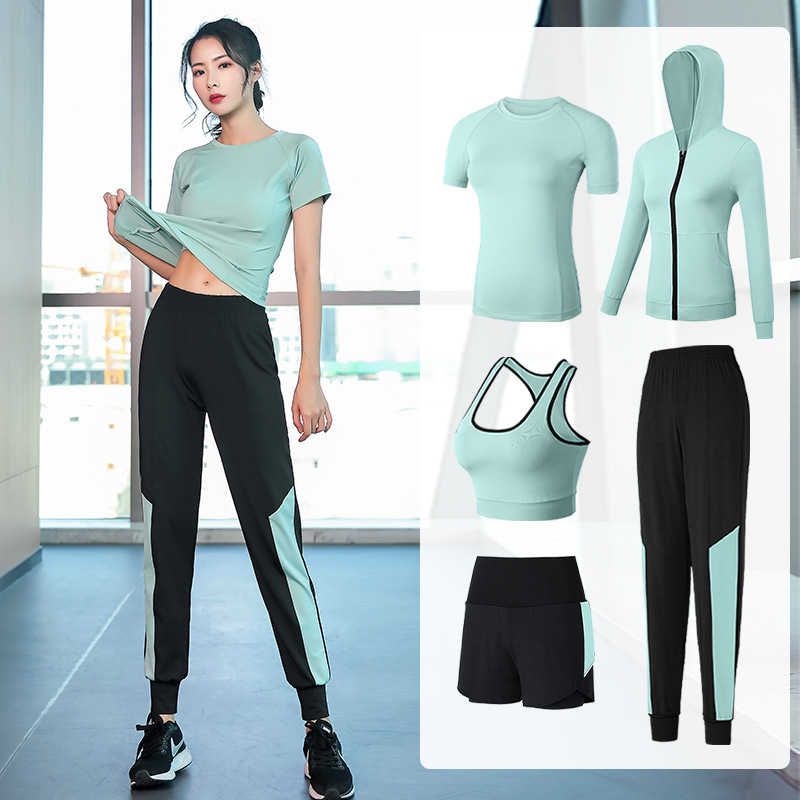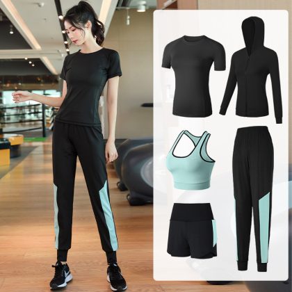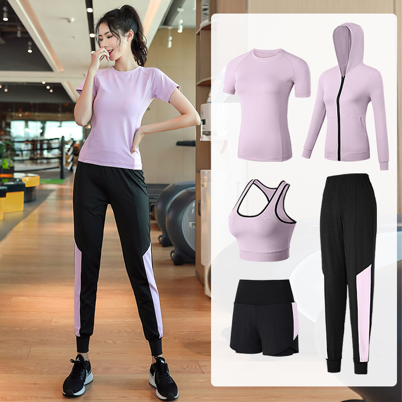 Five-piece Yoga Clothing Fitness Clothing Women’s Suit Running Quick-drying Clothes Sports Training Room Professional Short-sleeved High-elastic Jacket