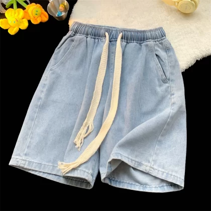 | nameOriginal | Five-point braided denim shorts summer washed drawstring |