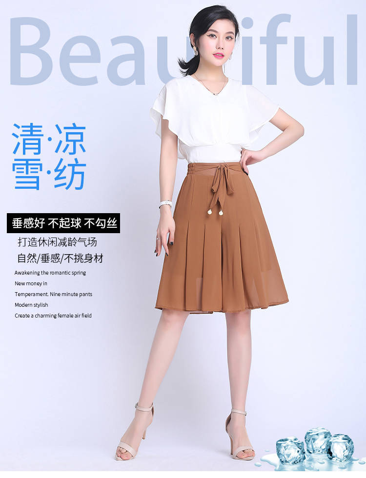 | nameOriginal | Five-point chiffon casual, thin and drapey high-waisted wide-leg pants |