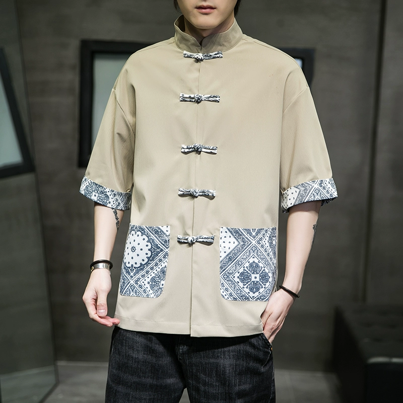 | nameOriginal | Five-point ice silk stand-collar Chinese style Tang suit short-sleeved shirt |