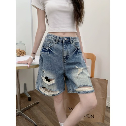 | nameOriginal | Five-point kumikumi washed ripped high-waisted wide-leg pants |