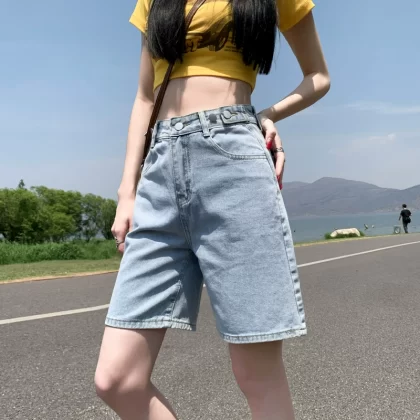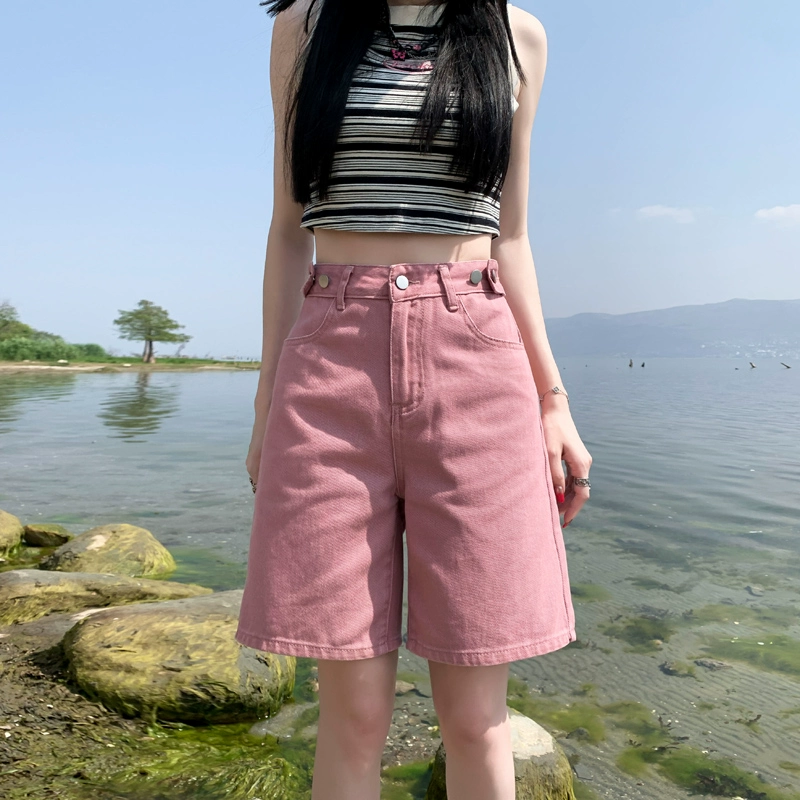 | nameOriginal | Five-point pink autumn high-waisted a-line denim shorts |