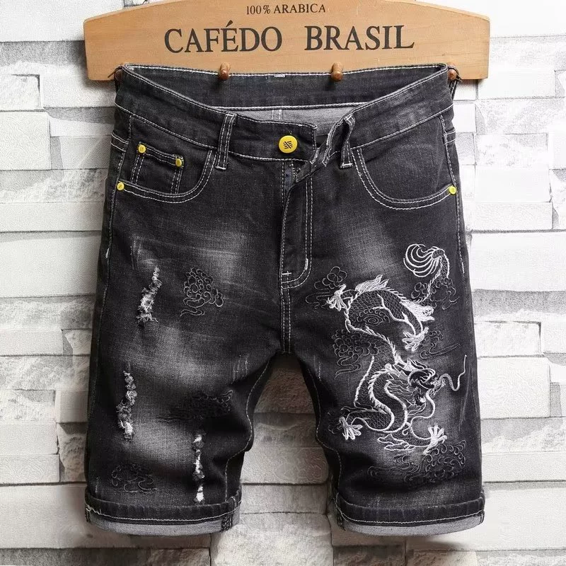 | nameOriginal | Five-point silver dragon summer youth ripped pants embroidered |