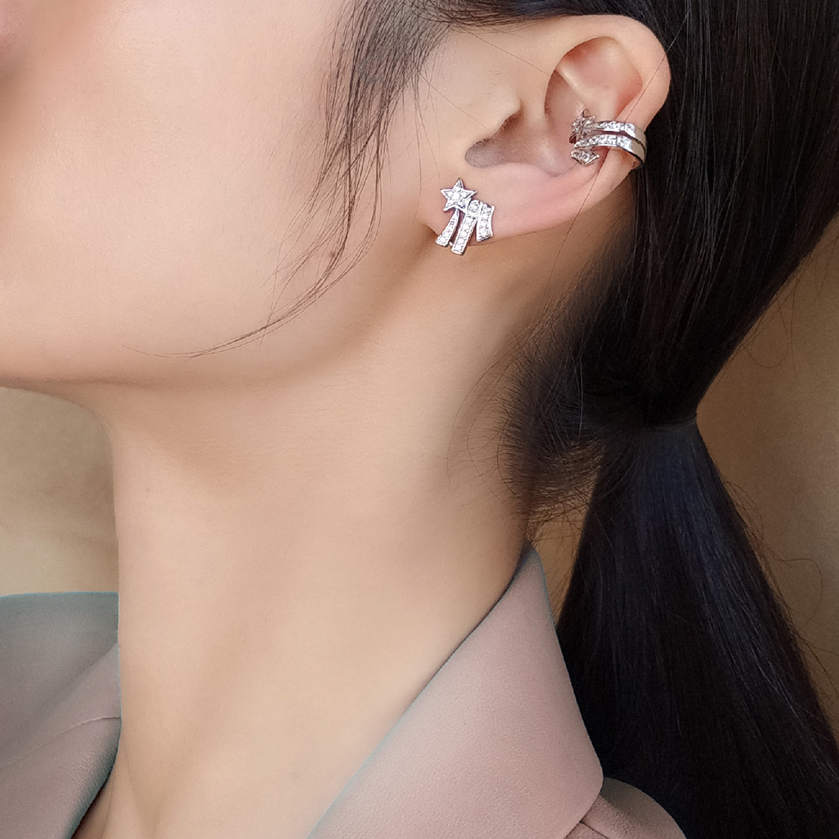 | nameOriginal | Five-pointed star earrings MOXI jewelry net red with ins high texture ear clip diamond comet zircon pop earrings |