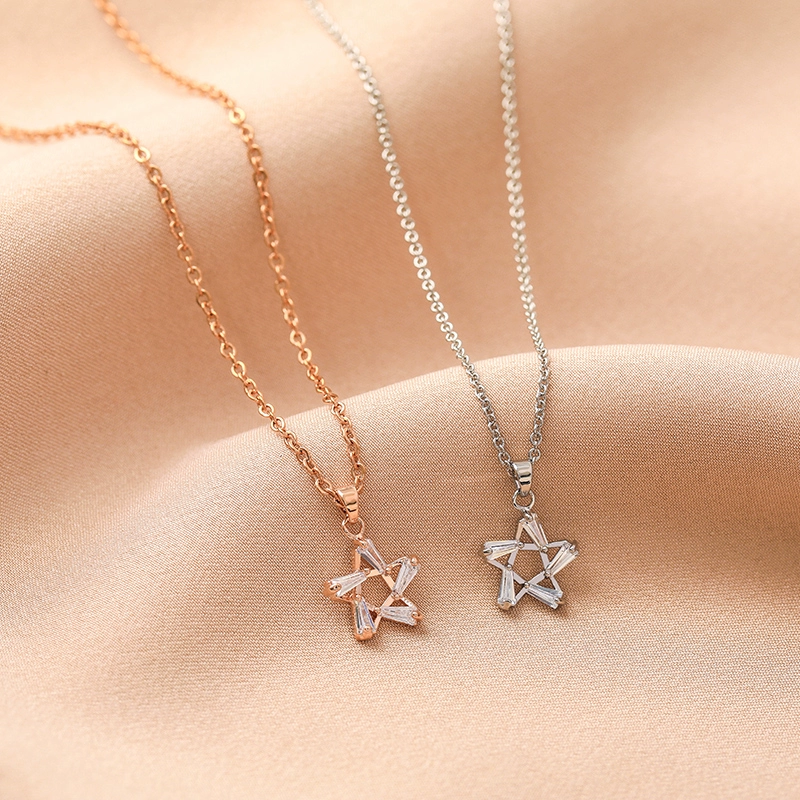 | nameOriginal | Five-pointed star imitation zircon pendant Korean Internet celebrity temperament simple clavicle chain niche versatile light luxury personalized necklace for women |