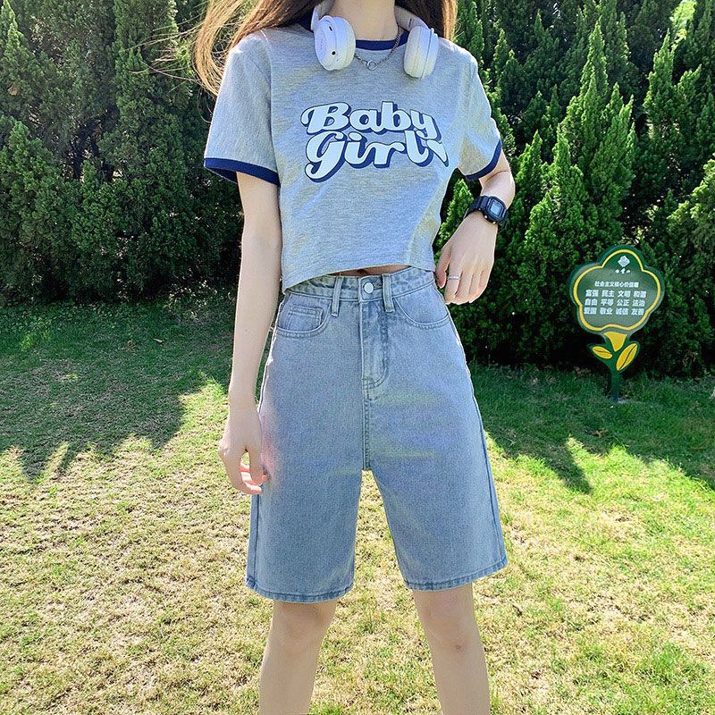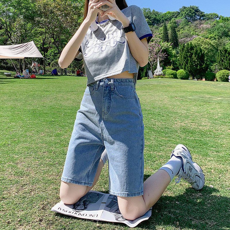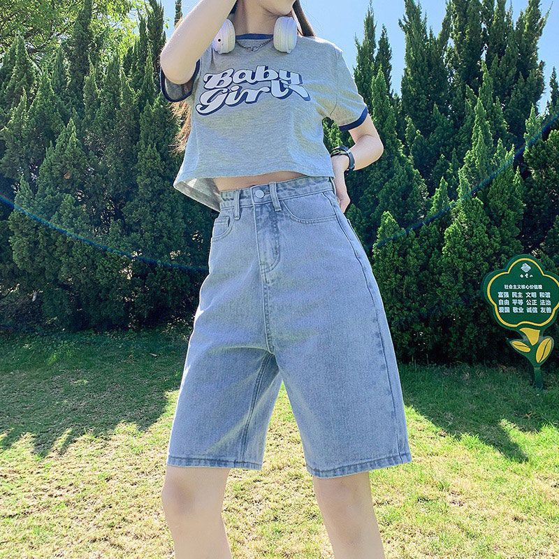 | nameOriginal | Five Points Denim Shorts Women's Summer 2024 New High Waist Five Points Pants Thin Loose Slimming Straight Leg Pants |