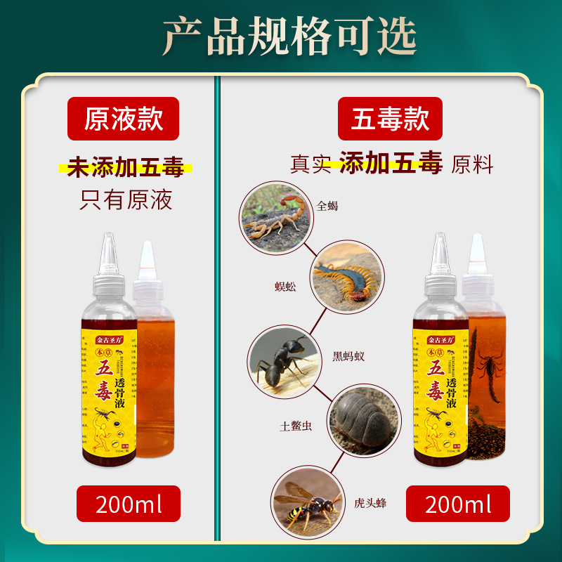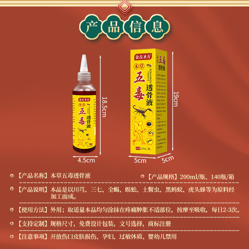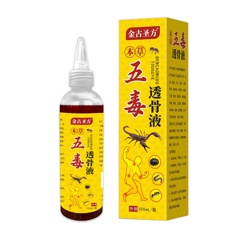 | nameOriginal | Five poisons bone-permeable liquid wholesale wind-chasing liquid e-commerce live supply bone-permeable paste neck, shoulder, waist and leg smear liquid five poisons |