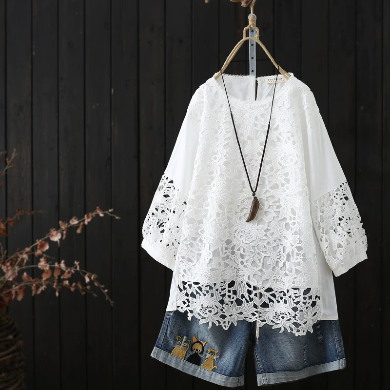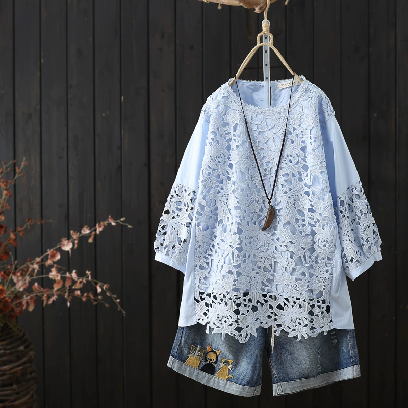 | nameOriginal | Five-quarter sleeve new loose hollow top round neck T-shirt |