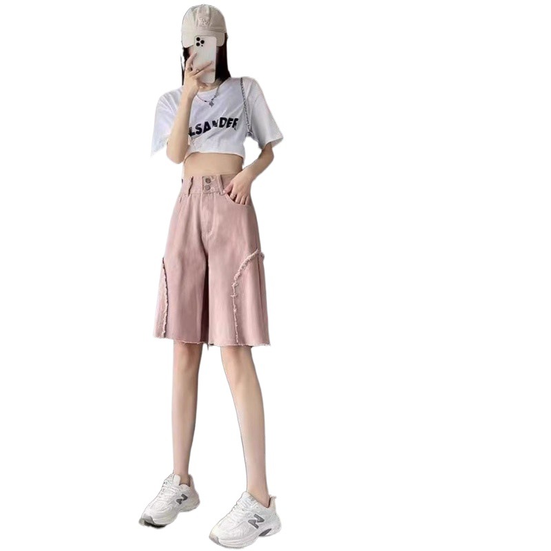 | nameOriginal | Five Rough Edge Pink Jeans Women's Summer 2024 New High Waist Slimming Small Loose Wide Leg Pants |