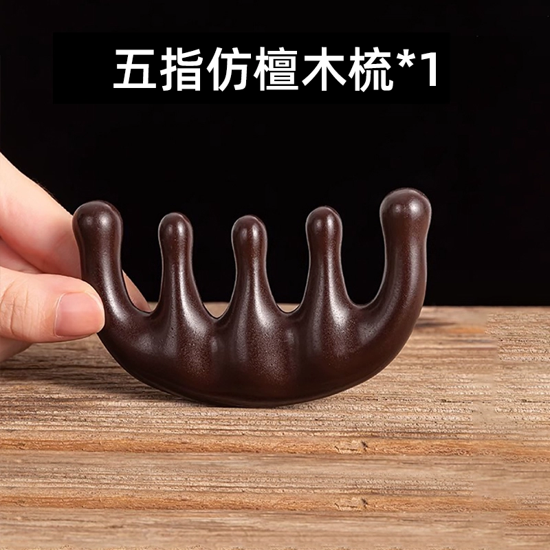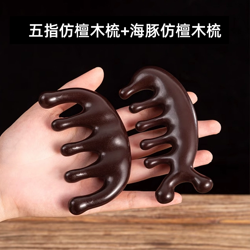 Five-tooth massage comb, head meridian comb for men and women, scalp scraping, dredging and nourishing hair follicles, wide-tooth imitation sandalwood comb
