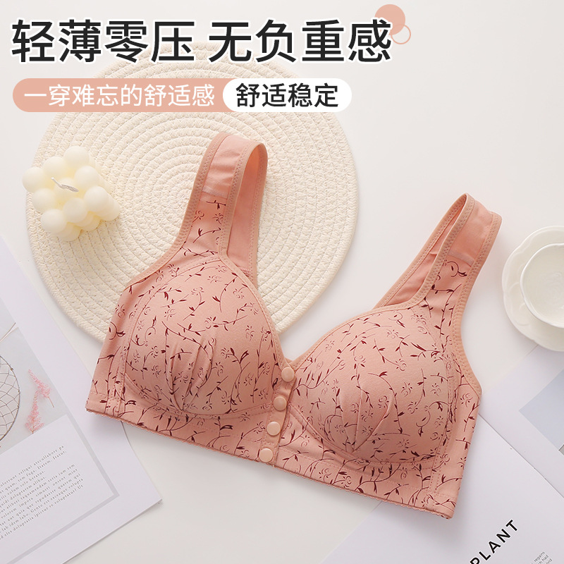 Fixed Cup front buckle mom middle-aged and elderly underwear women plus size thin wireless bra vest bra