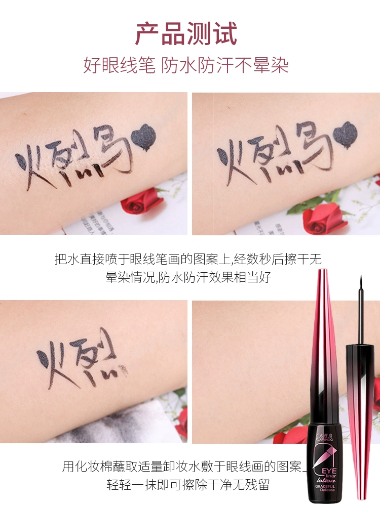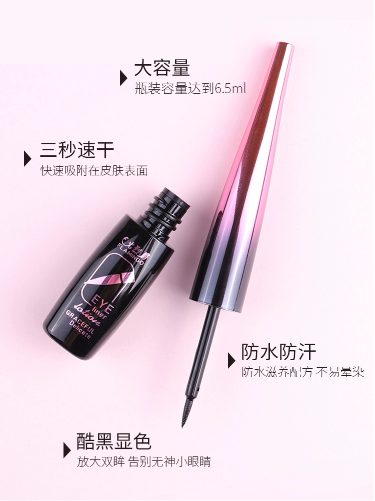 | nameOriginal | Flamingo Eyeliner Women's Waterproof Genuine Soft-head Fine-head Hard Head Not Easy to Smudge Soft-bristled Bottled Liquid Eyeliner |