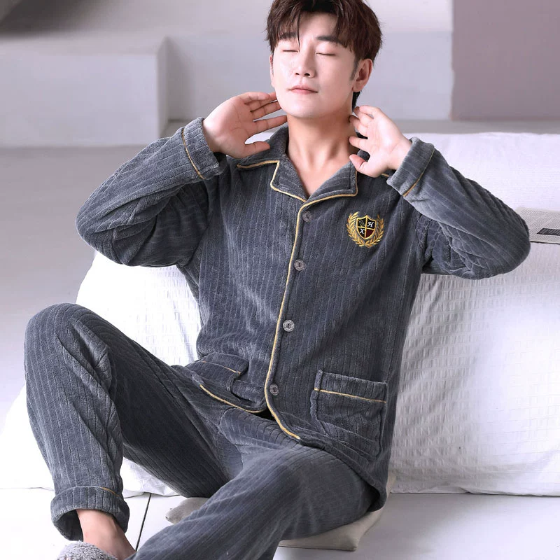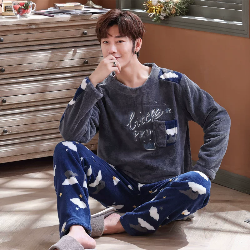 | nameOriginal | Flannel 2024 Winter Men's Pajamas Plus Velvet Thickened Coral Velvet Warm Autumn and Winter Youth Large Size Home Clothing Set |