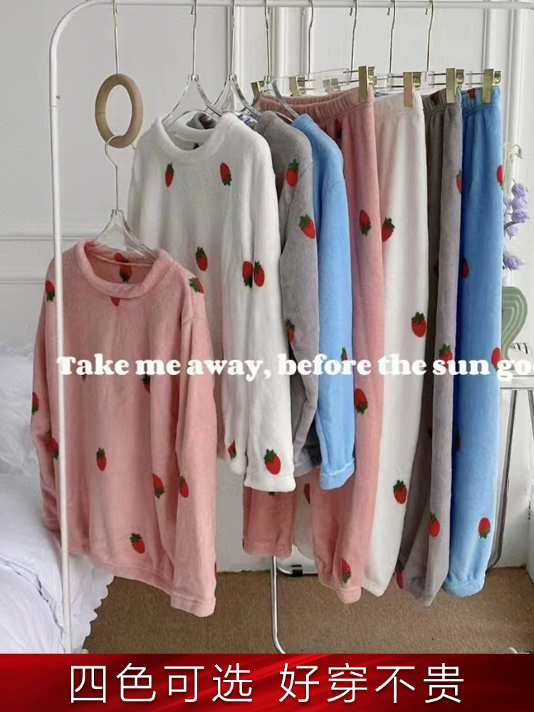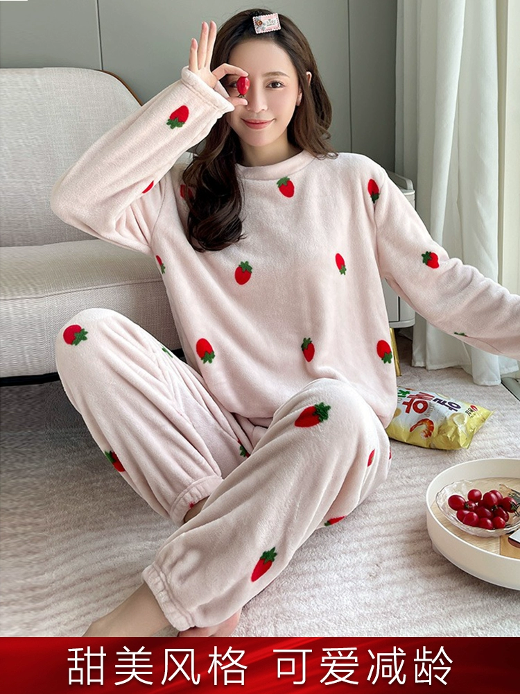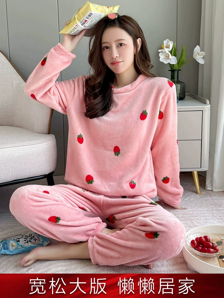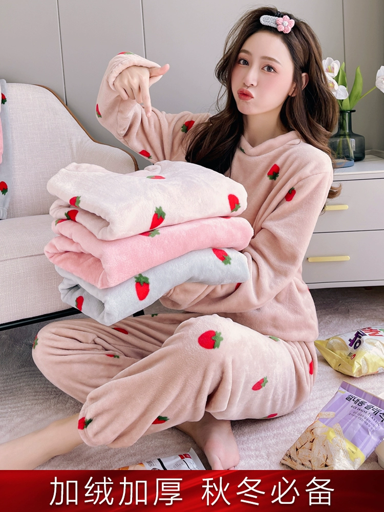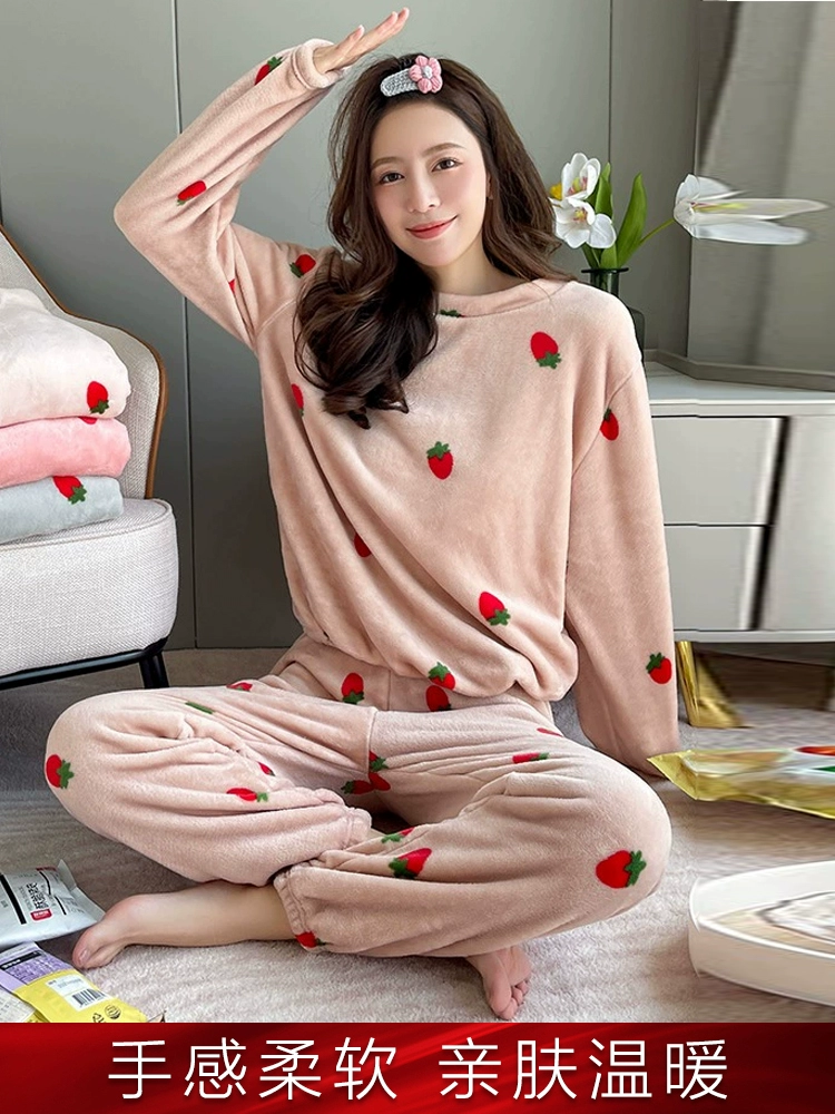 | nameOriginal | Flannel pajamas for women in autumn and winter, thickened velvet, warm, sweet and cute, can go out, coral velvet home wear set |