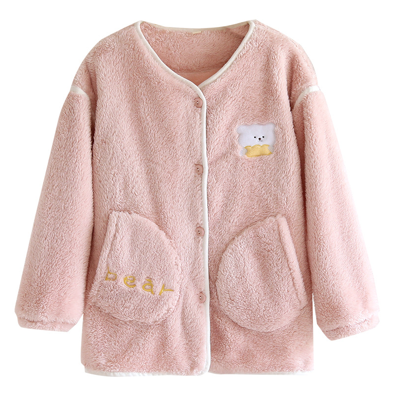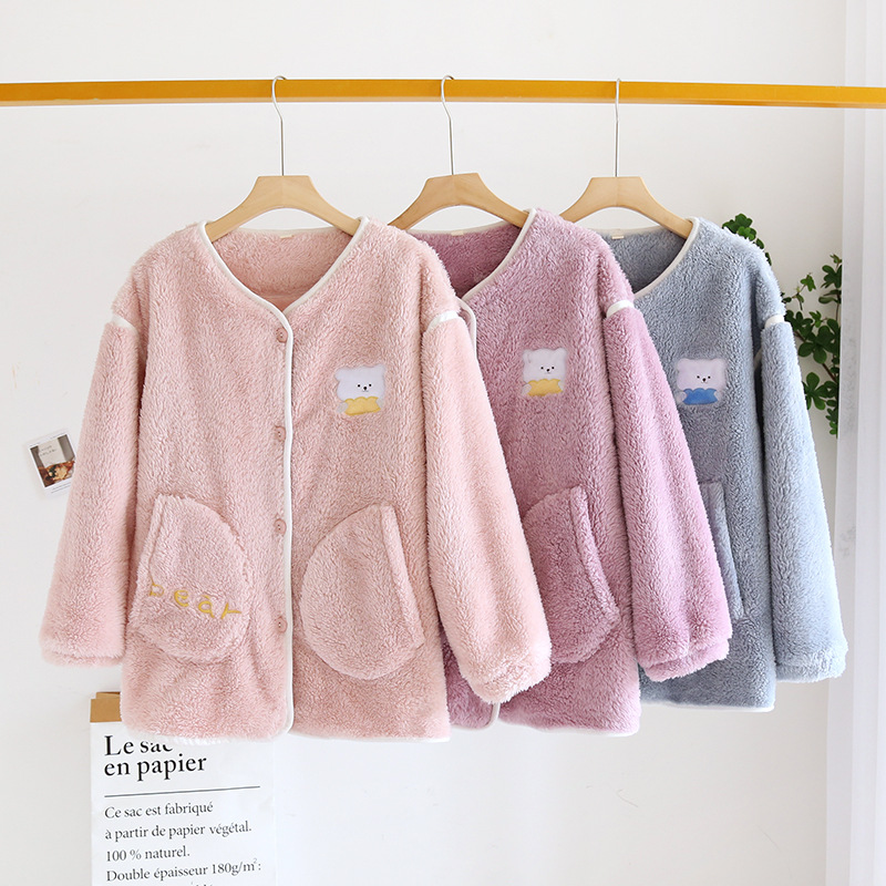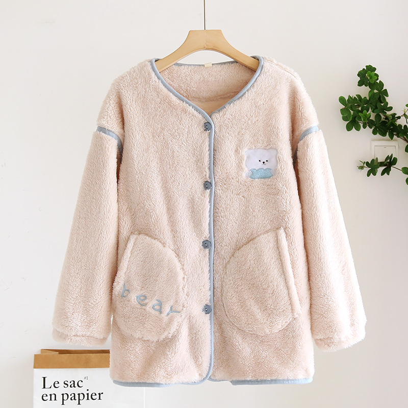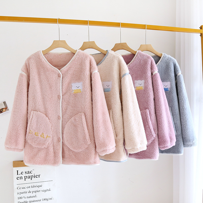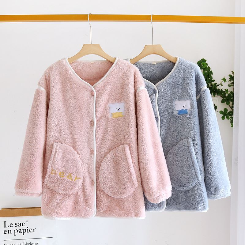 Flannel Pajamas Women’s Top Autumn and Winter Bear Warm Pajamas Four-color Faleinel Winter Pajamas Collarless