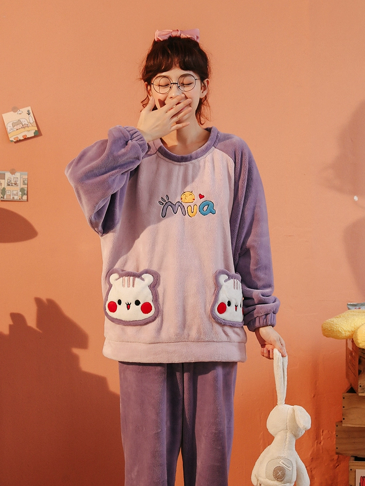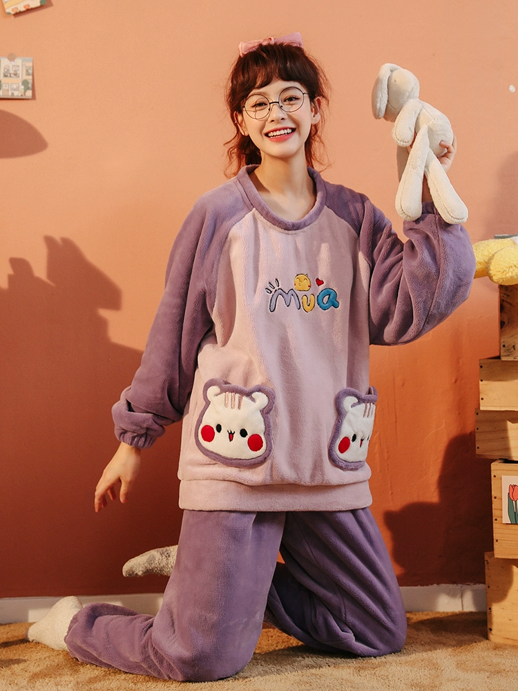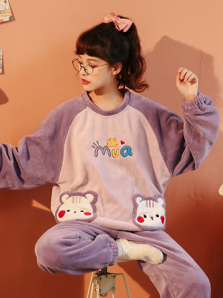 | nameOriginal | Flannel Pajamas Women's Winter Two-piece Set Korean Style Sweet and Cute Student Autumn and Winter Coral Fleece Plus Velvet Thickened Home Clothes |