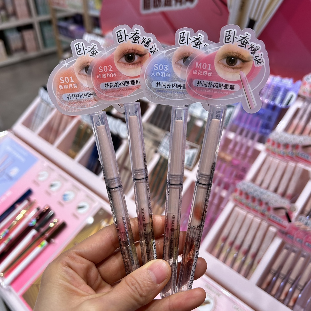 | nameOriginal | Flapping fluttering silkworm pen Miniso wow pink diamond mermaid teardrop cotton pink cloud |