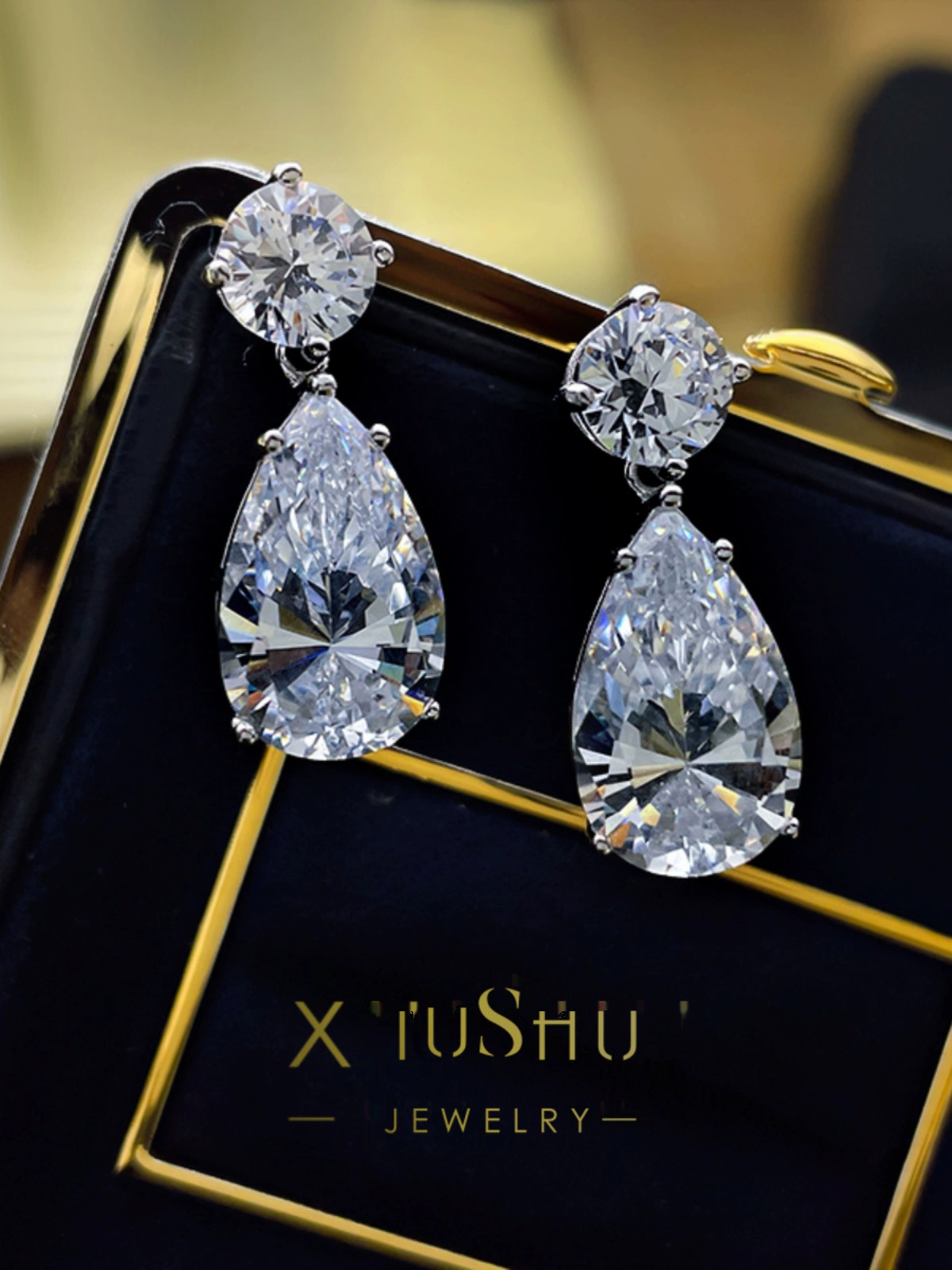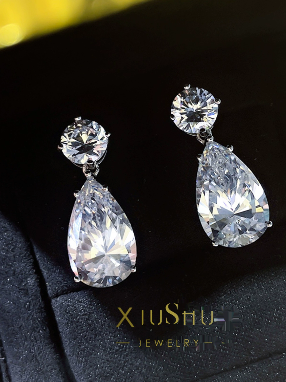| nameOriginal | Flash! 12 carat large water drop earrings imported high carbon diamond simulated diamond earrings luxury large earrings |