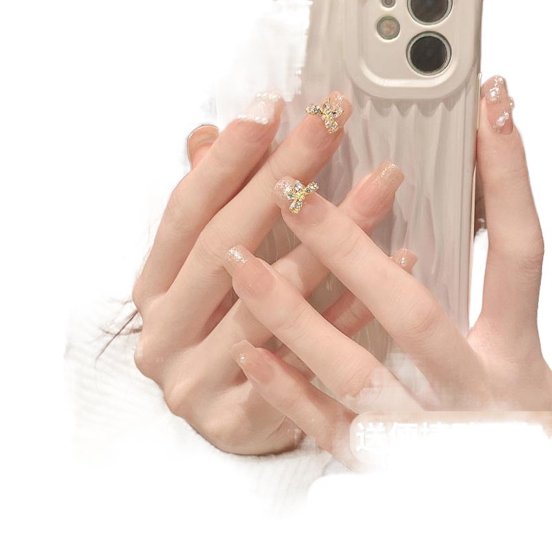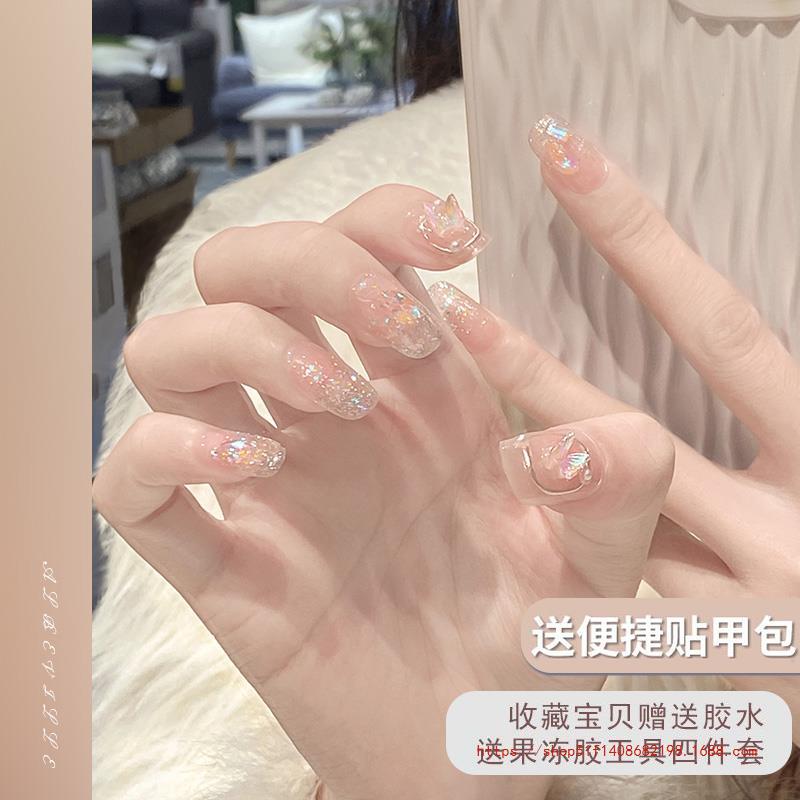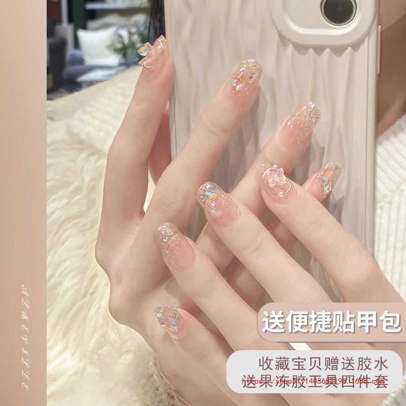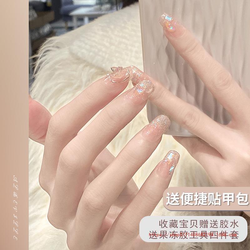 Flash Diamond Aurora Butterfly Wear Armor 2024 New Light Luxury Advanced Finished Nail Art Patch Long Nail Paste
