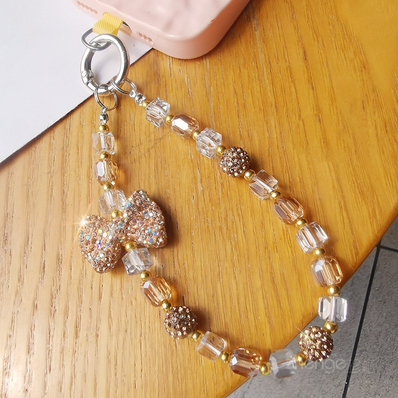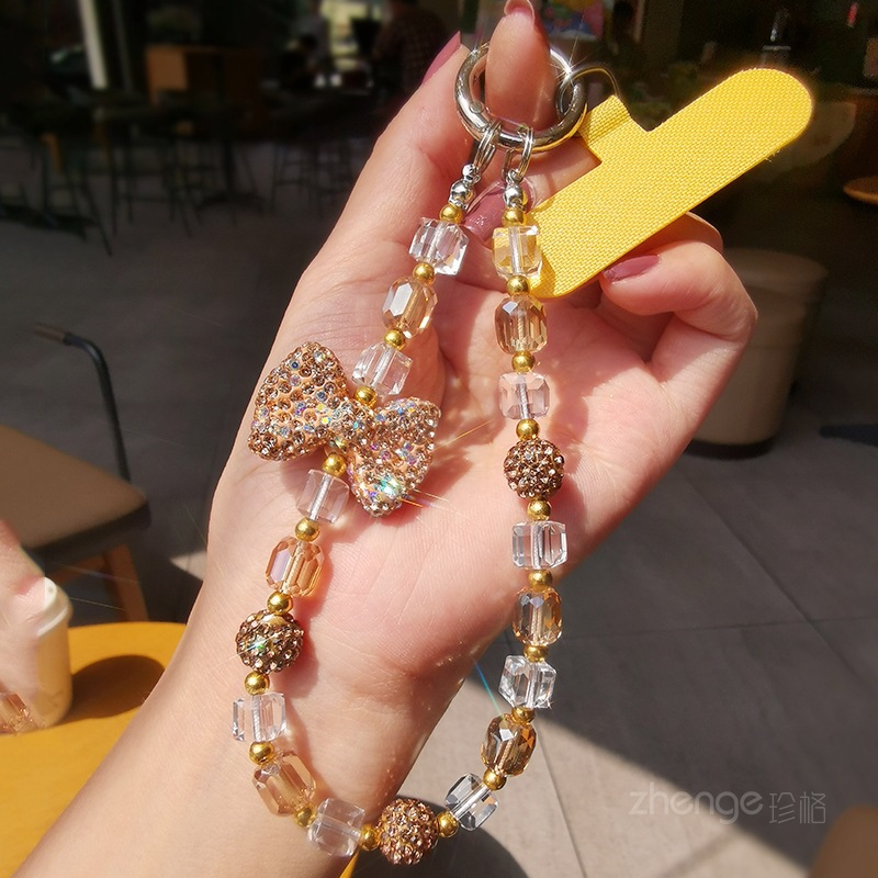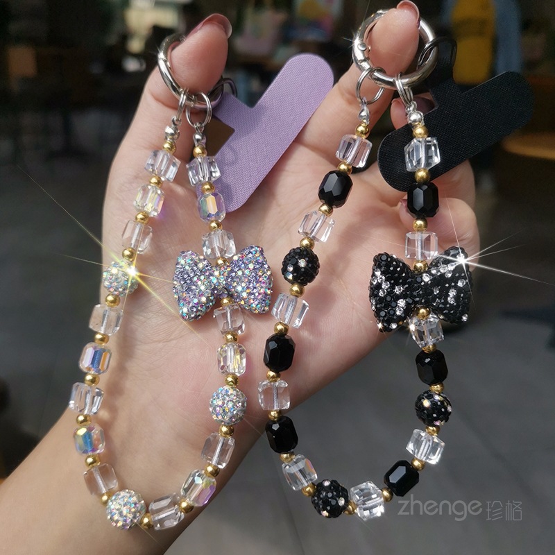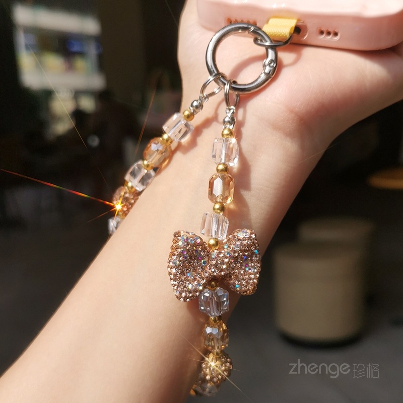 Flash Diamond Bow Crystal Mobile Phone Chain Women's Ins Style Fashionable Chanel Style Portable Wrist Hanging Ornaments Short Hanging Chain
