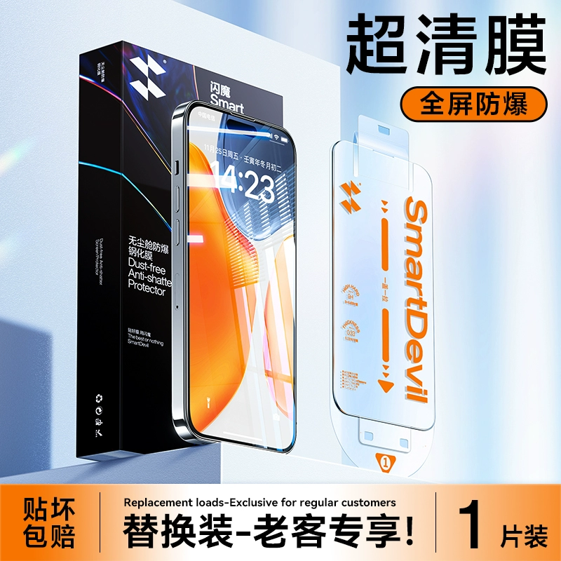 | nameOriginal | Flash magic dust-free warehouse tempered film mobile phone explosion-proof apple |