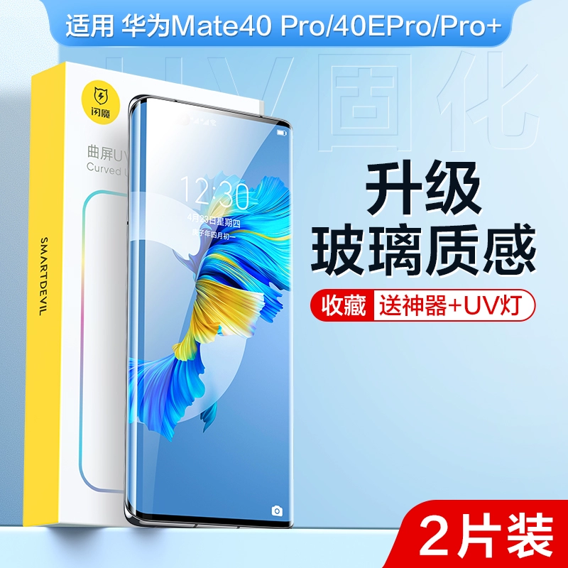Flash magic is suitable for 50 Huawei Mate40pro tempered film soft 30pro mobile phone P40Pro full screen UV invisible 40E water gel 20 light solid film 40RS Porsche explosion-proof + HD sticker p30pro