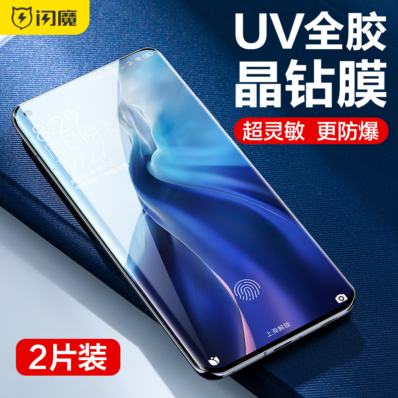 Flash Magic is suitable for Xiaomi 11 curved tempered film mi11pro mobile phone UV Mo 10S Supreme Edition 11ultra unlockable fingerprint 13/14pro full screen 12X glass high-definition eleven full glue patch