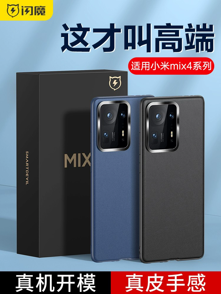 Flash magic is suitable for Xiaomi mix4 mobile phone case mix plain leather protective cover lens all-inclusive anti-fall new pro genuine leather case men's ultra-thin silicone high-end female mx4 creative por internet celebrity trendy brand cooling
