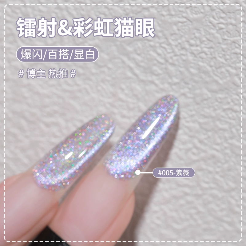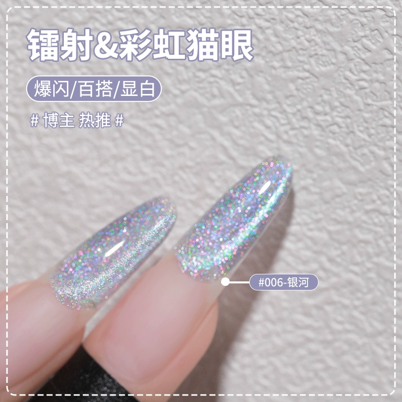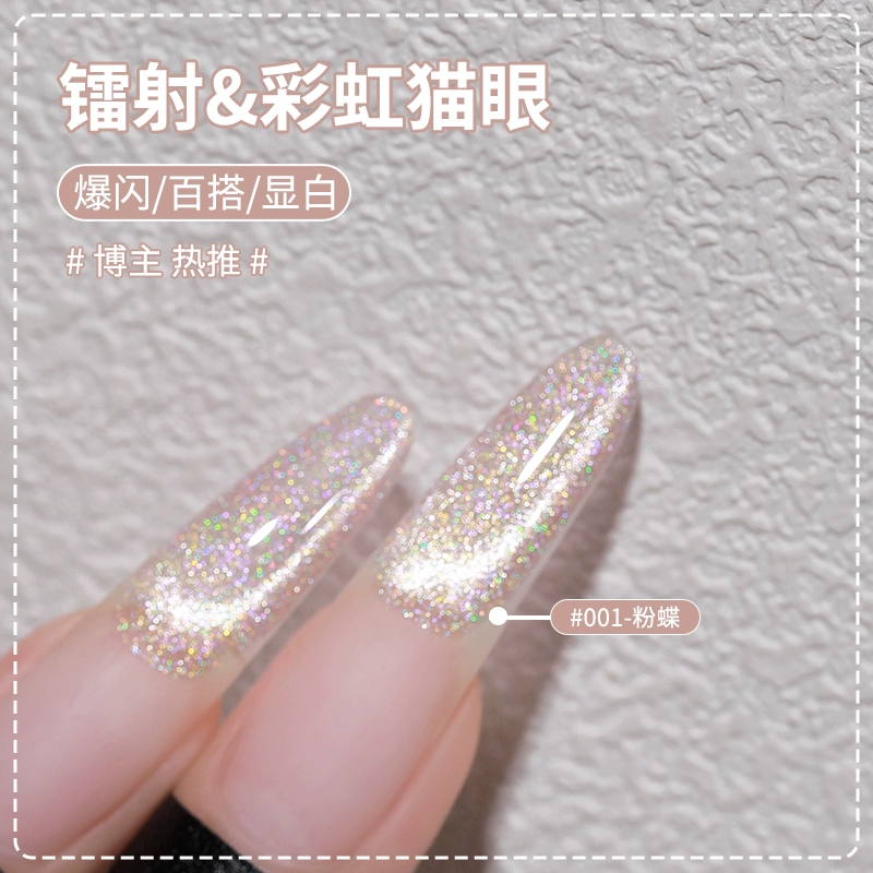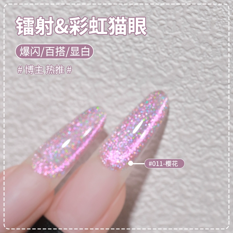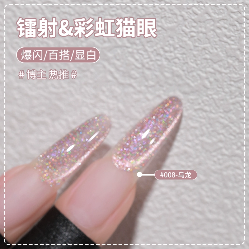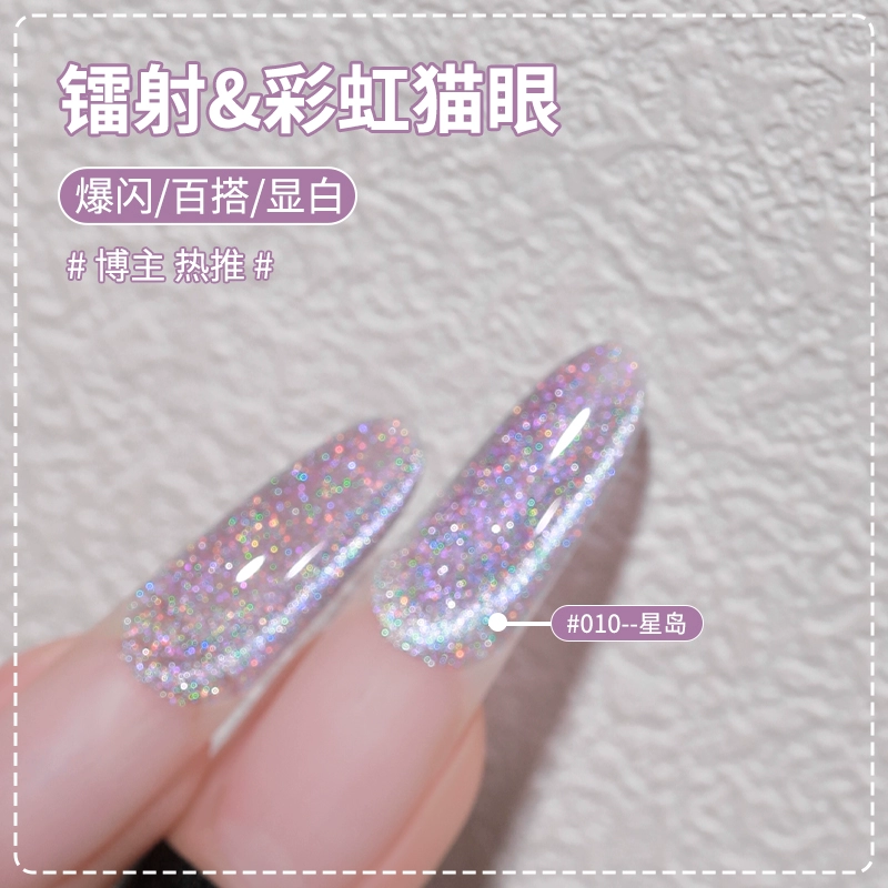 Flashing Rainbow Cat Eye Nail Polish Revealing White Quartz Laser