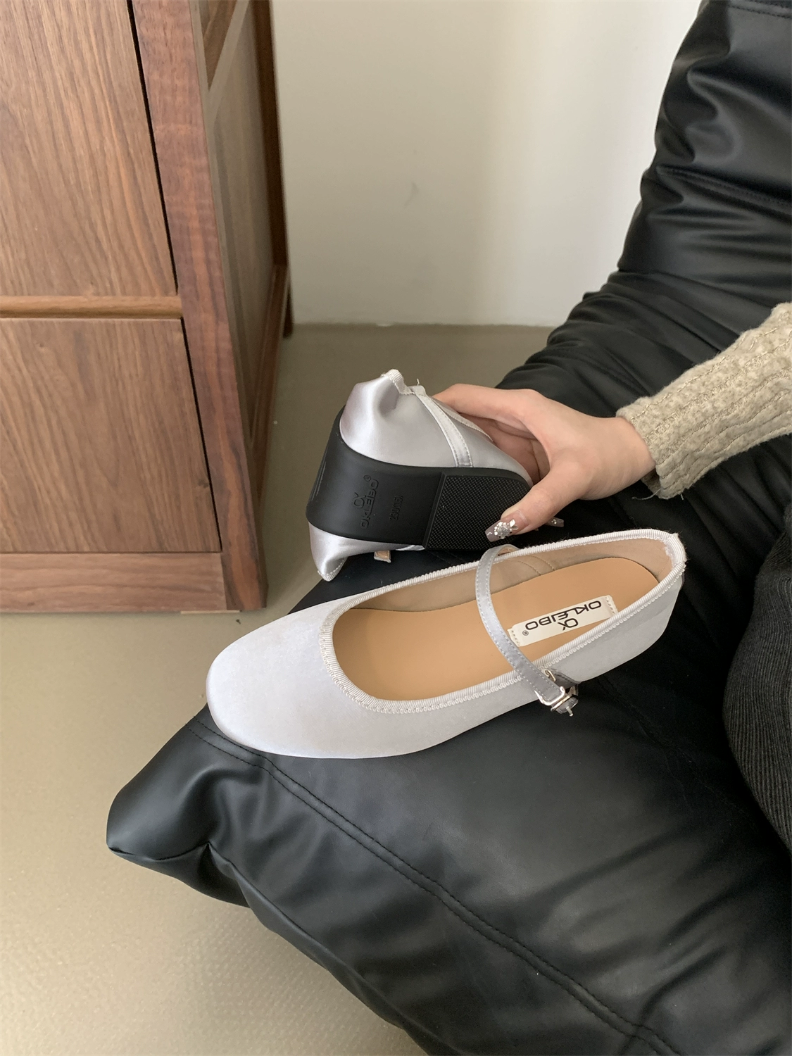 Flat fairy style silver evening shoes