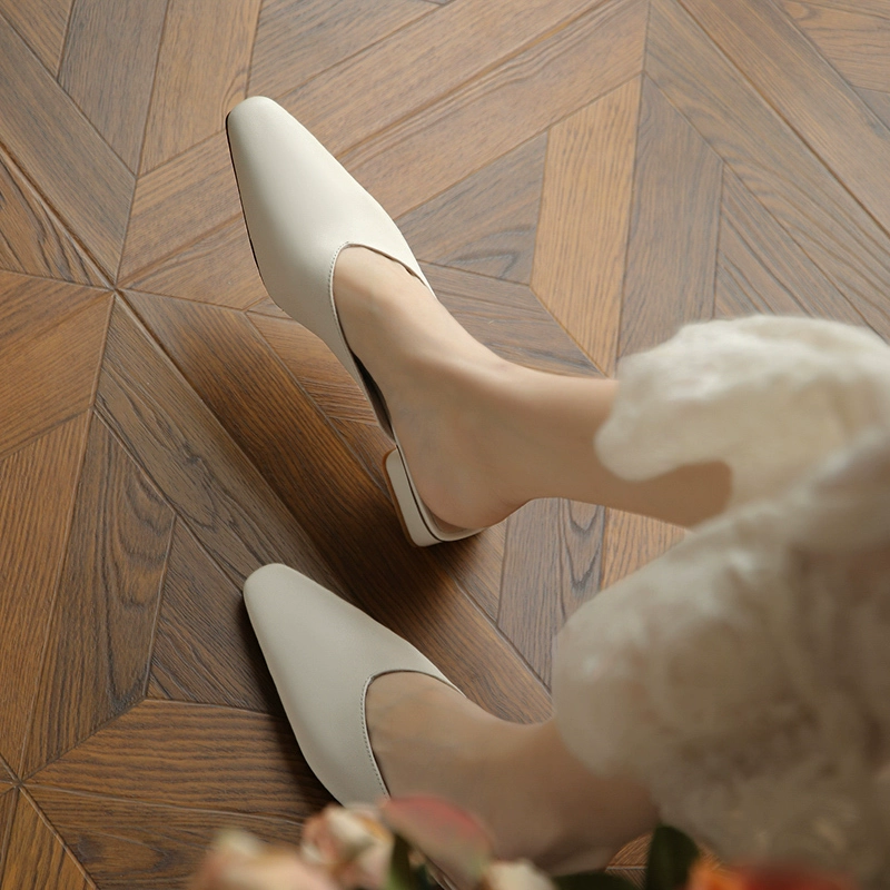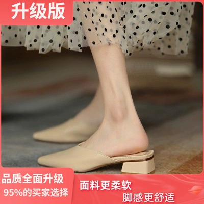 | nameOriginal | Flat outer thick heel soft leather pointed toe nude half slippers |