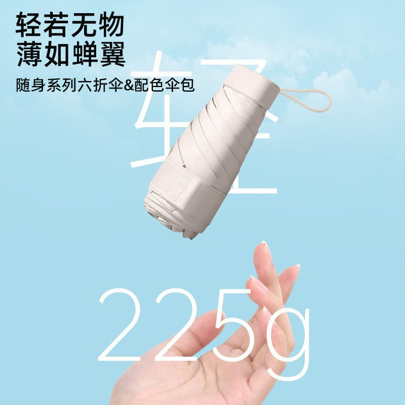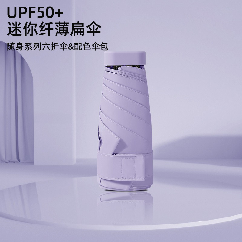 Flat six fold folding small portable mini sun umbrella sun protection UV protection umbrella pocket rain and rain dual-use sun protection