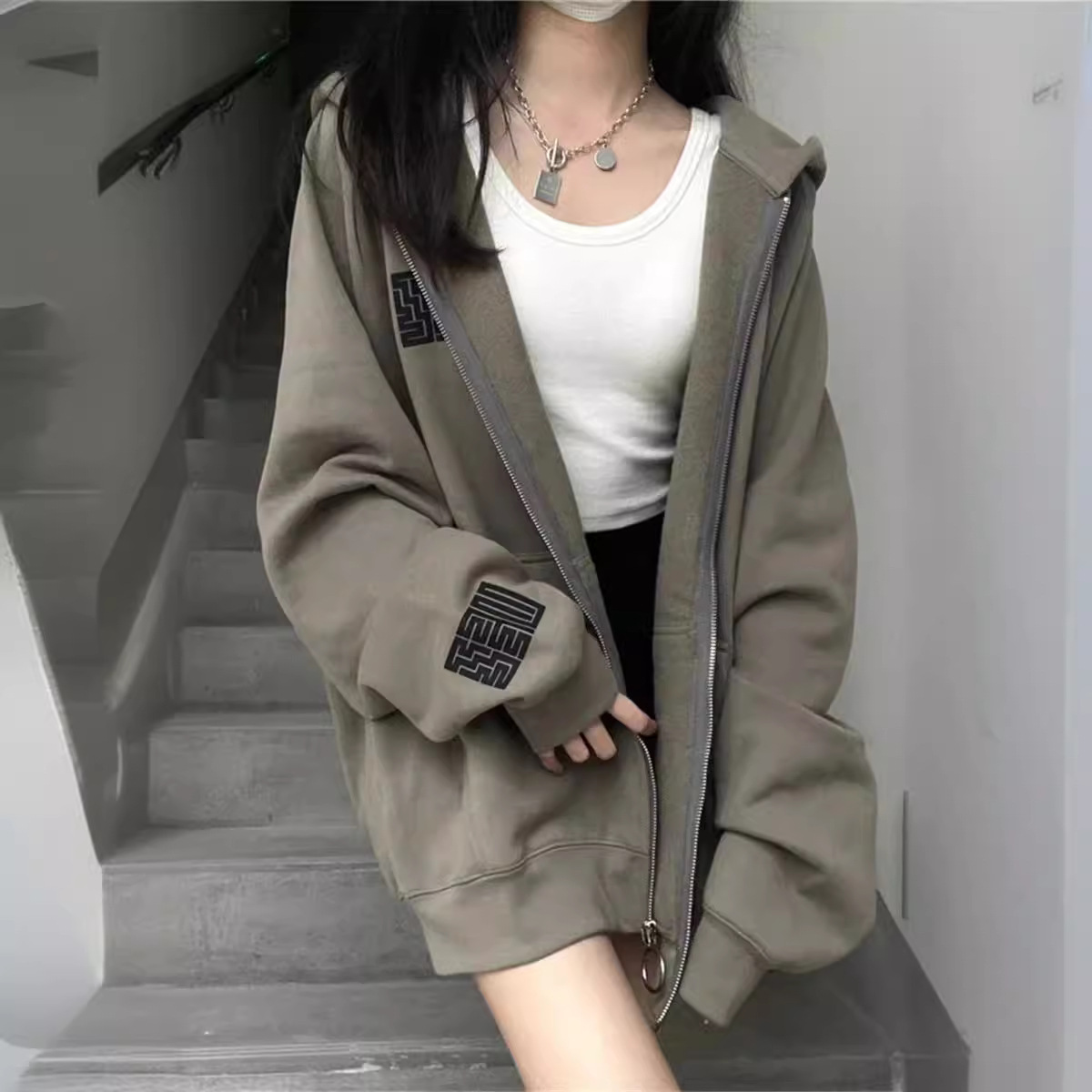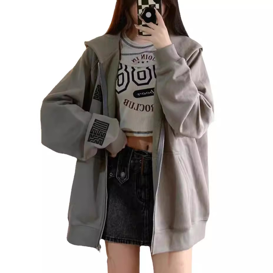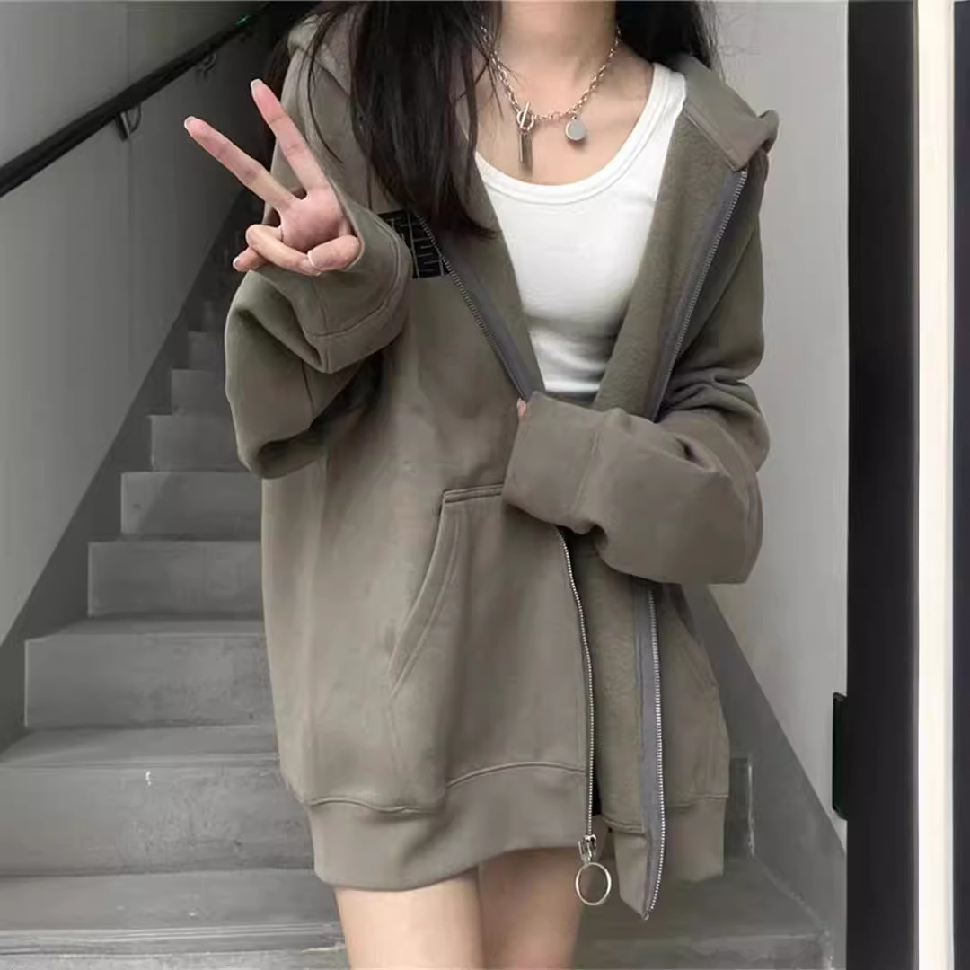 | nameOriginal | Fleece-lined coat for women 2023 autumn and winter Korean style lazy style student ins trendy loose zipper long sleeve cardigan sweater |