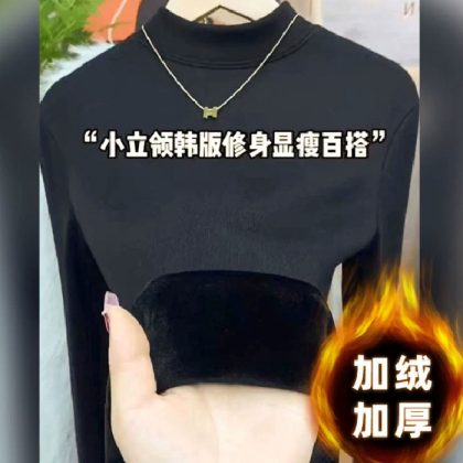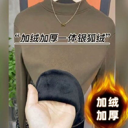 | nameOriginal | Fleece-lined Silver Fox velvet ~~ autumn and winter New fleece-lined thickened solid color half turtleneck undershirt women's fashionable top |