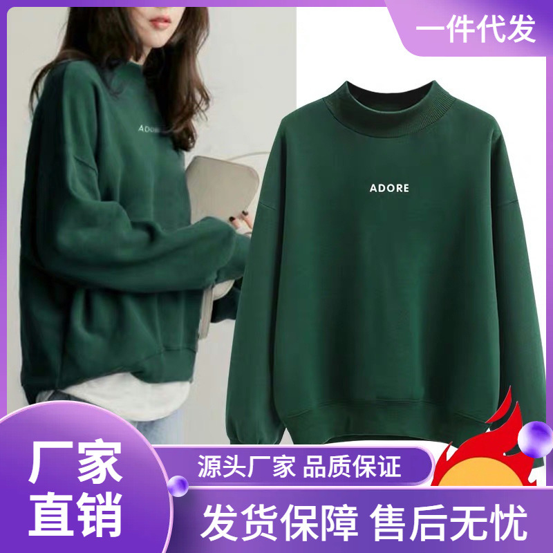 | nameOriginal | fleece-lined sweater women's 2024 autumn and winter new Korean version of loose half high collar coat student letter coat women's foreign trade |