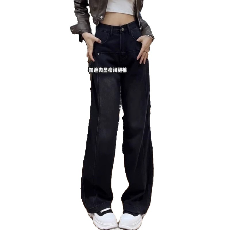 | nameOriginal | Fleece-lined thick straight high waist Slimming jeans for women autumn and winter New plus size stretch loose wide leg pants trousers |