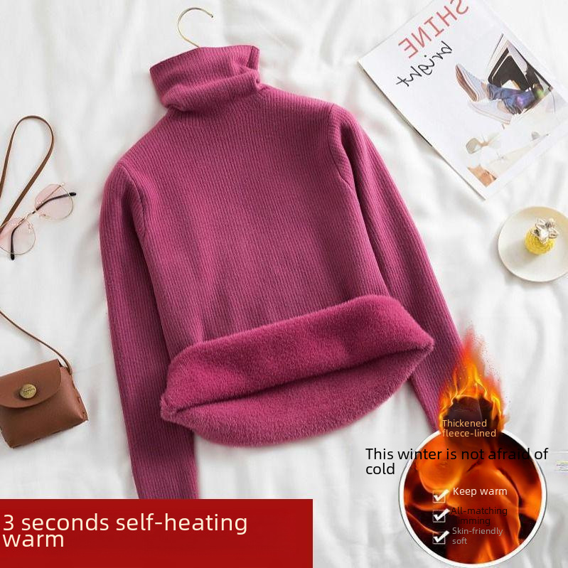 | nameOriginal | Fleece-lined thick white knitted bottoming one-piece velvet autumn and winter warm pile collar sweater self-heating Western style top |