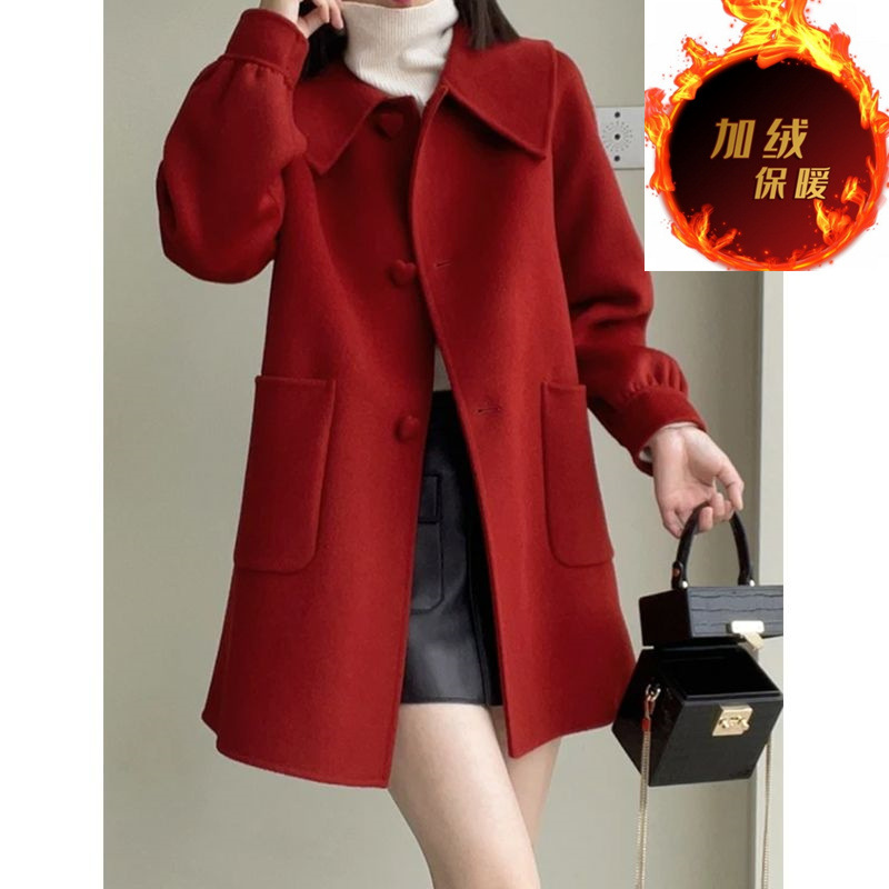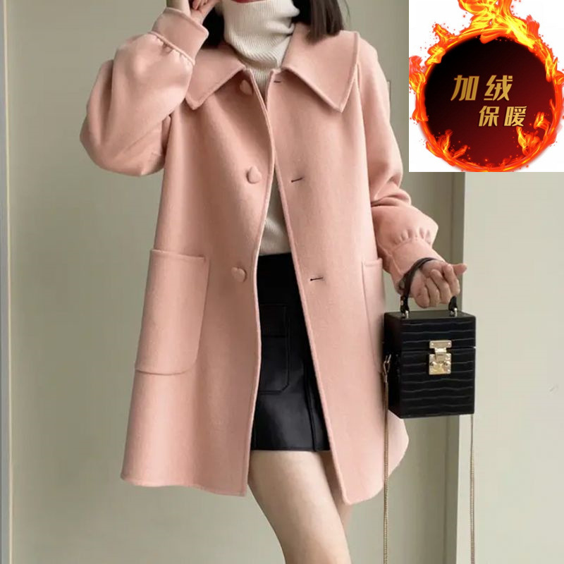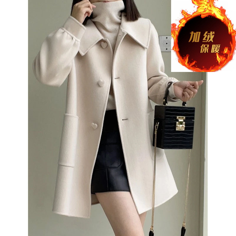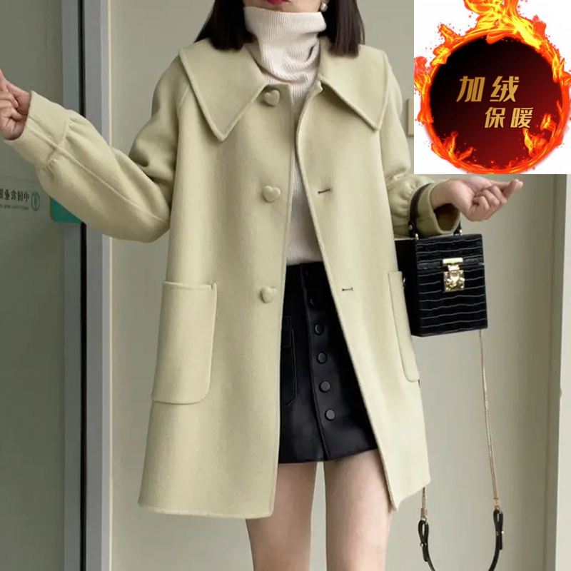 | nameOriginal | Fleece-lined thickened 2023 autumn and winter new mid-length love buckle slimming woolen coat doll collar woolen top for women |