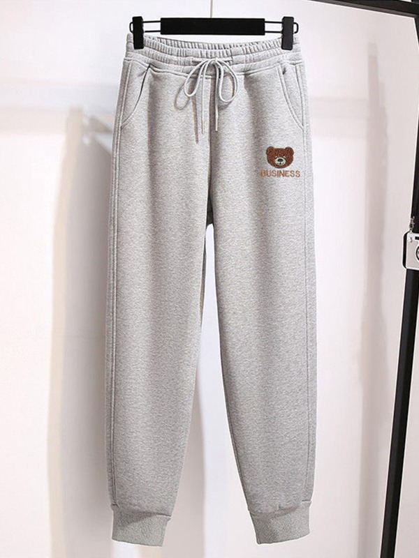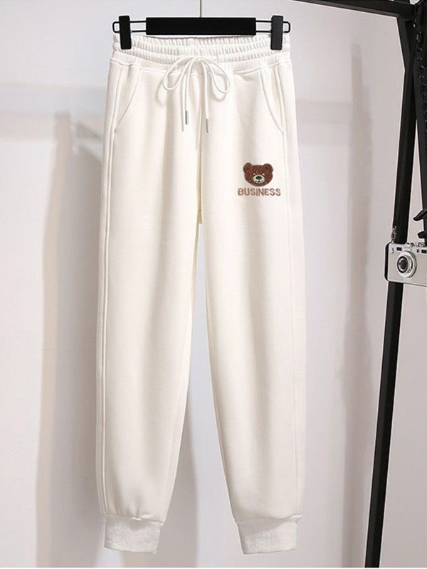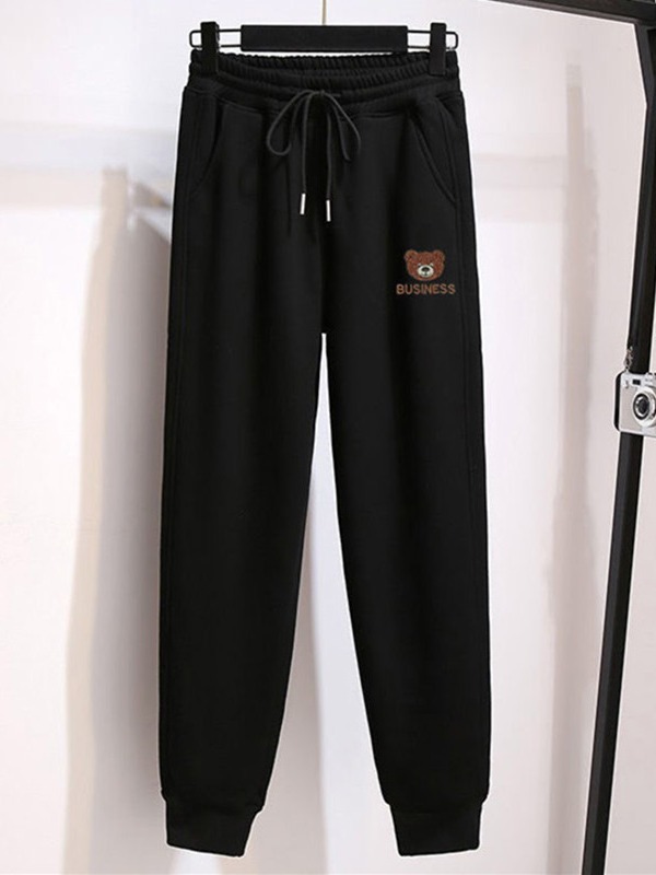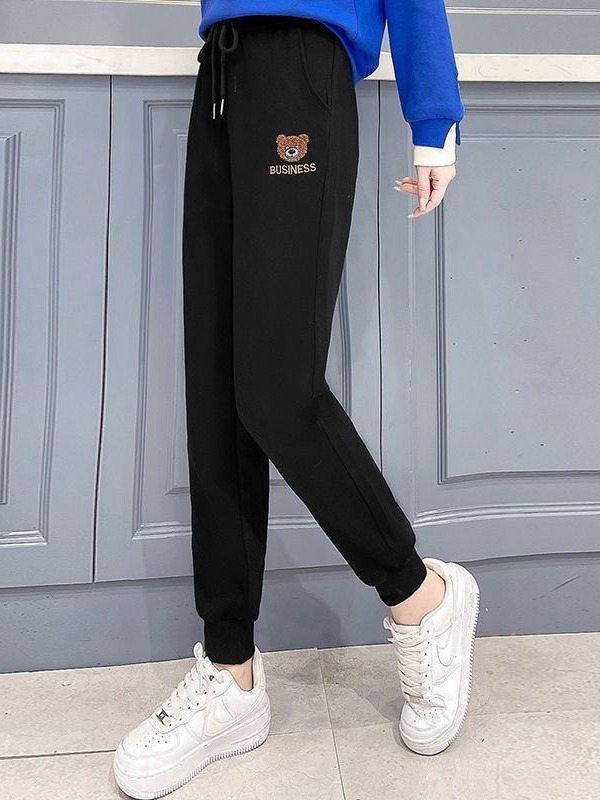 Fleece-lined thickened ankle-tied casual pants for women Spring Autumn Winter New loose bear printed sweatpants sports pants thin