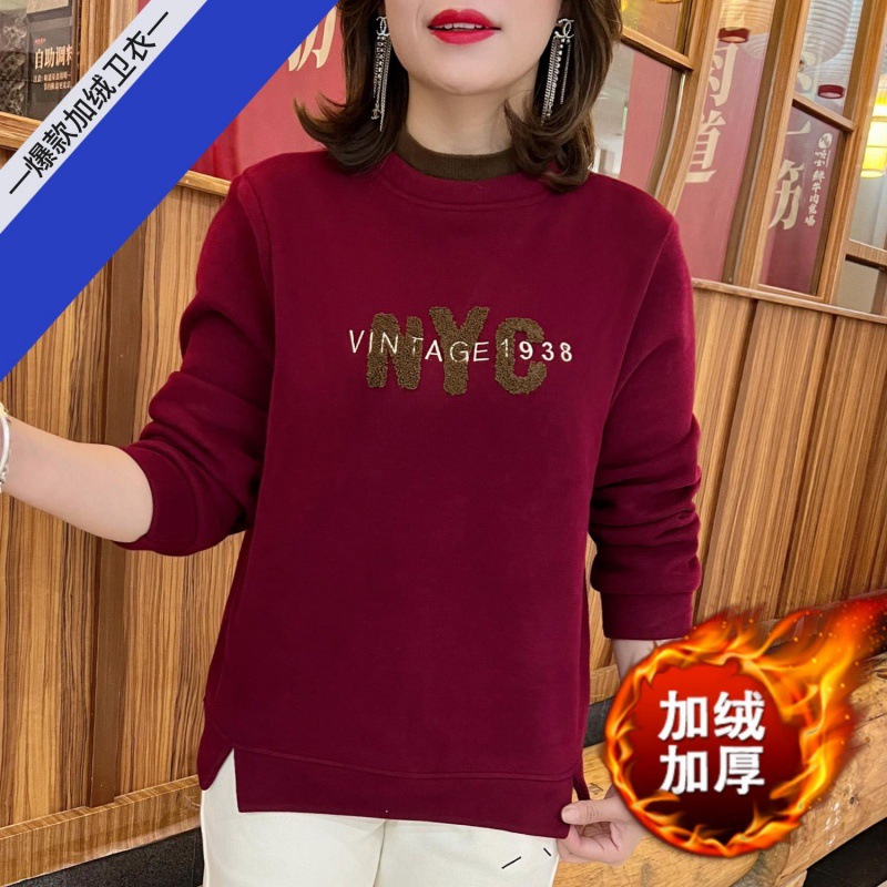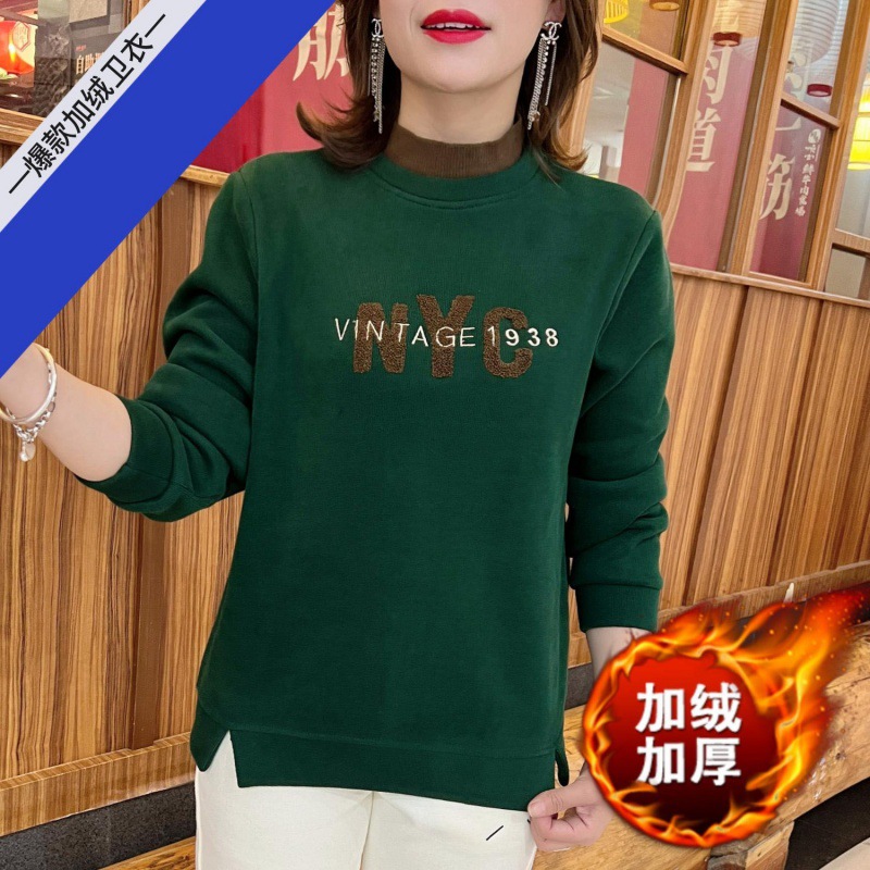| nameOriginal | Fleece-lined thickened autumn and winter women's fleece-lined warm fashionable letter turtleneck sweater printed round neck versatile long sleeve sweater for women |